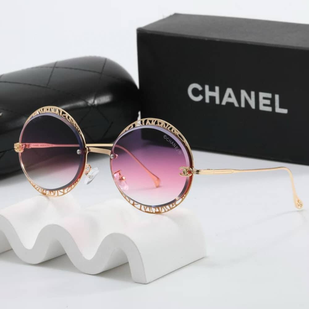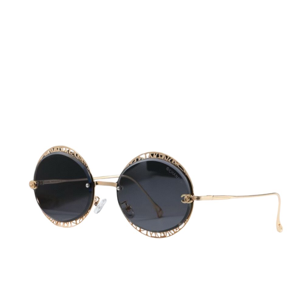 CHANEL CUTOUT ROUND SUNGLASSES BLACK