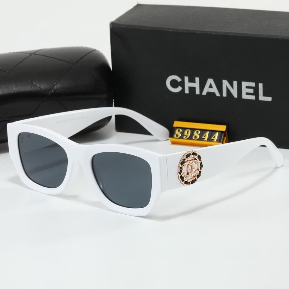 CHANEL SQUARE SUNGLASSES TWEED ACCENT IN WHITE