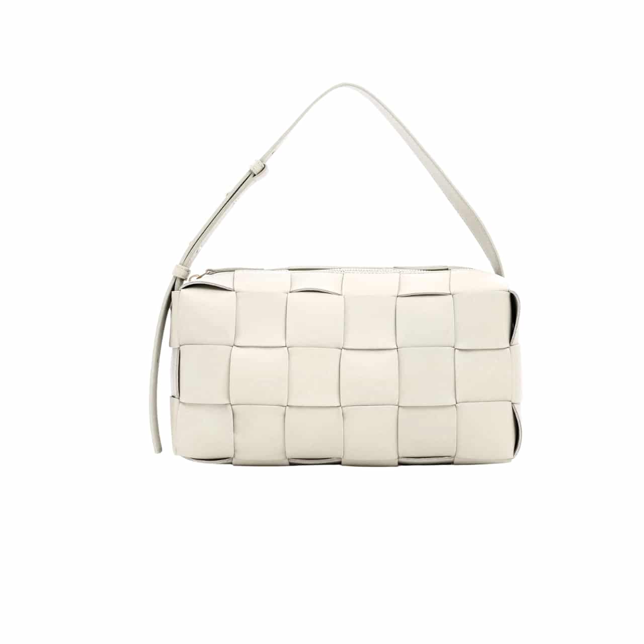 Bottega Veneta//Brick Cassette Intreccio Leather Shoulder Bag//White//28cm