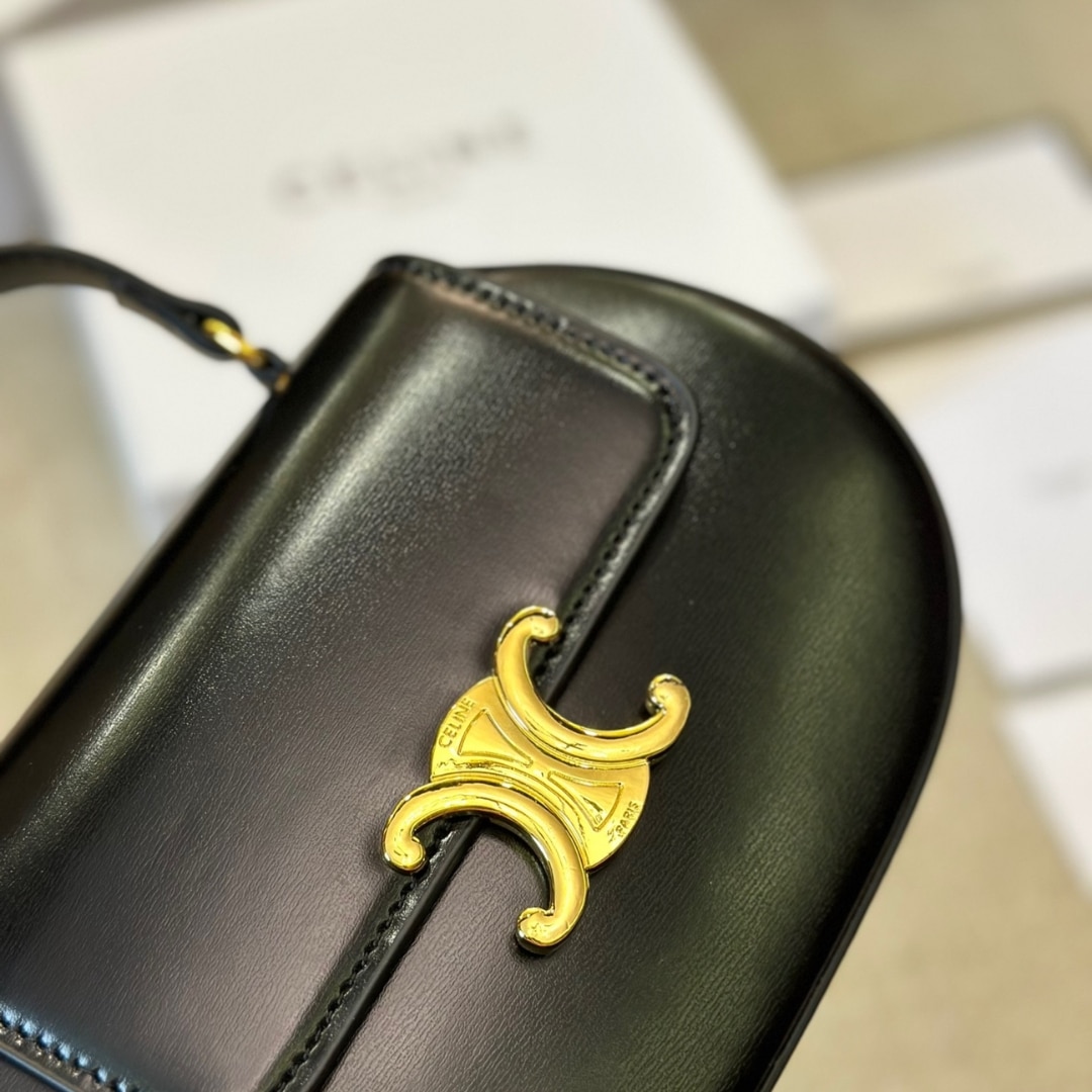 Celine//Besace Clea Square Flap Bag In Shiny Calfskin//Black//20cm