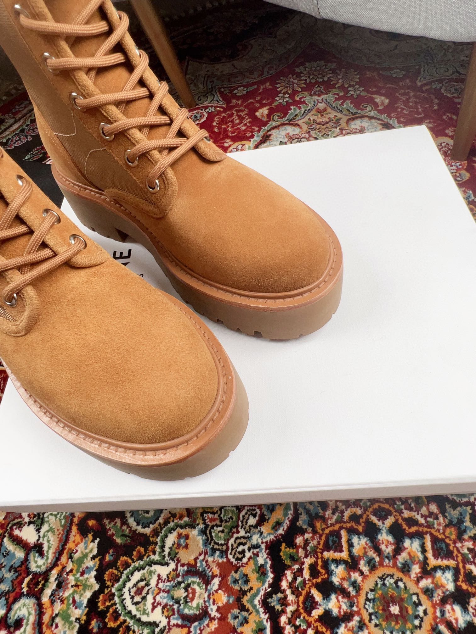 CELINE BULKY LACE UP BOOT WITH TRIOMPHE IN NYLON SUEDE CALFSKIN DARK BEIGE 354657005C04DB