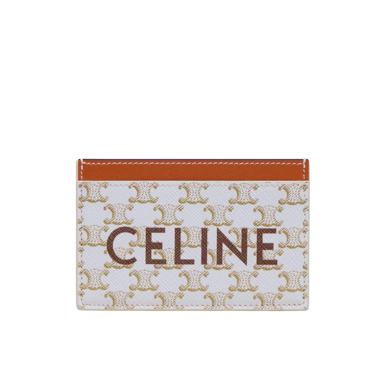 Celine Card Holder In Triomphe Canvas With Celine Print White Tan 10cm 10B702CLY 01TA