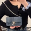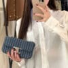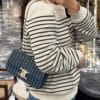 Celine Chain Shoulder Bag Claude In Striped Denim With Strass Blue 20Cm 115202GFG 07FX
