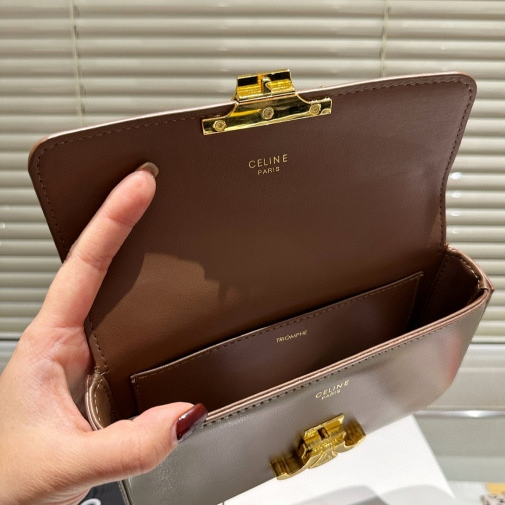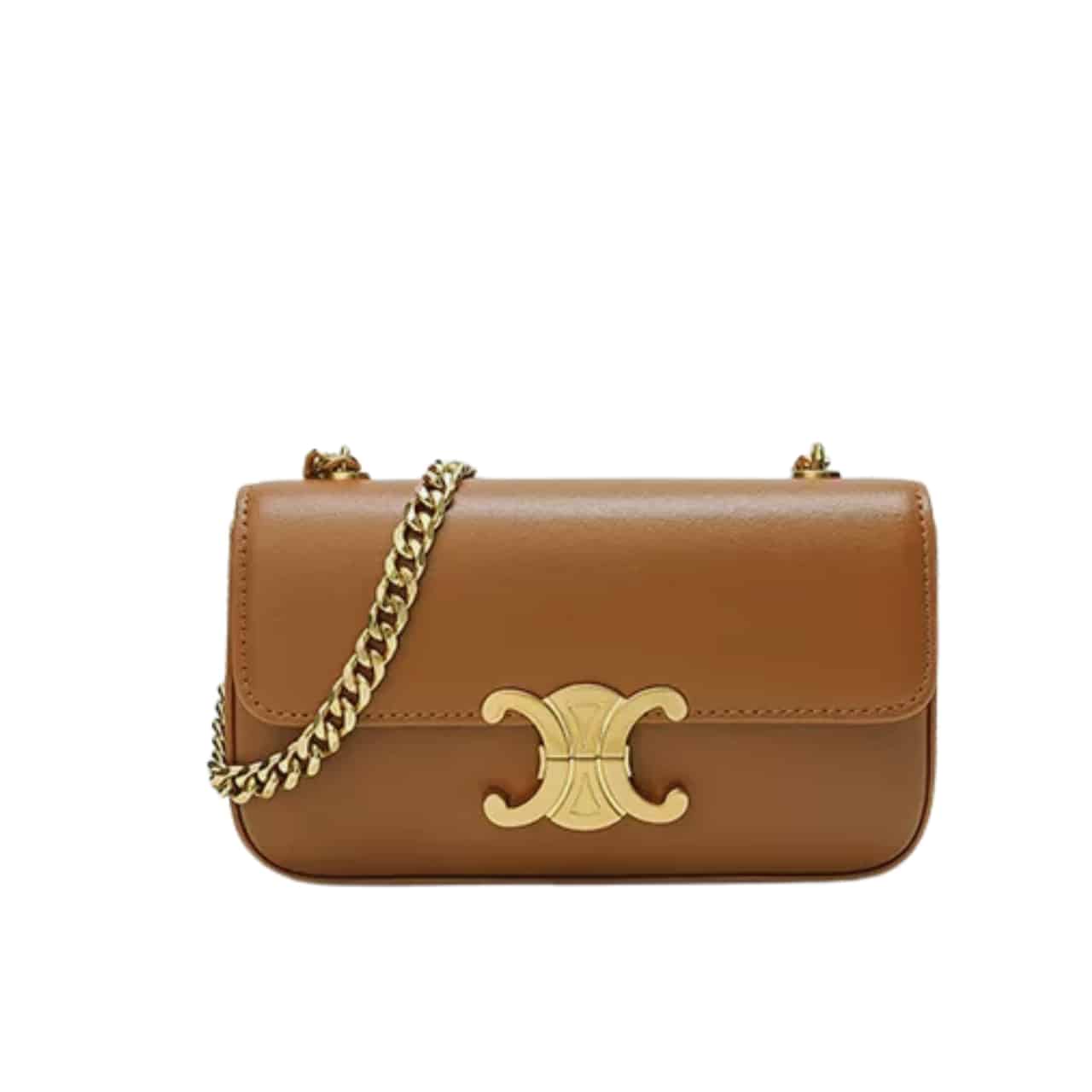 CELINE CHAIN TRIOMPHE IN SHINY SHOULDER BAG SILVER GOLDEN BROWN 20CM