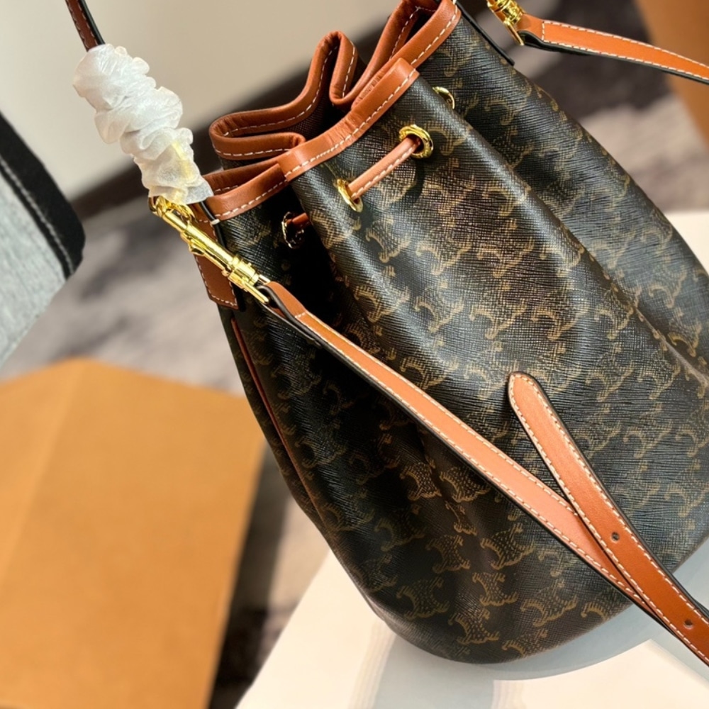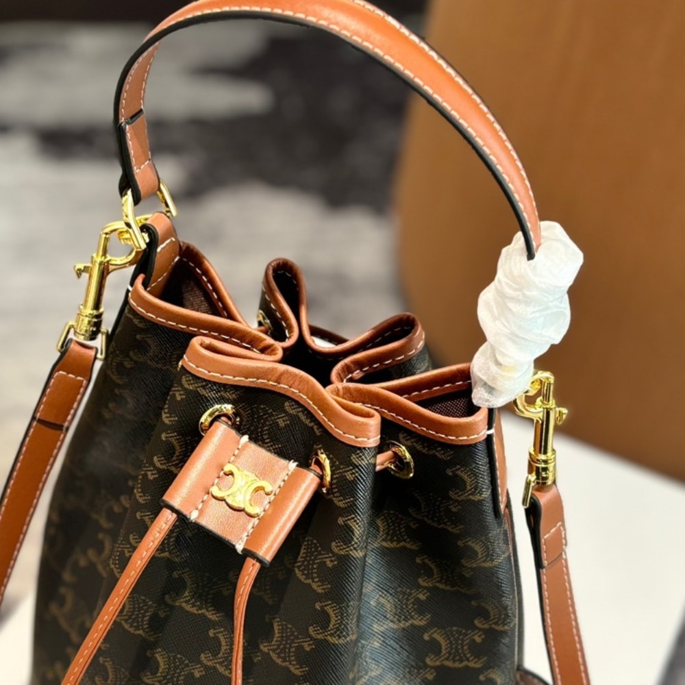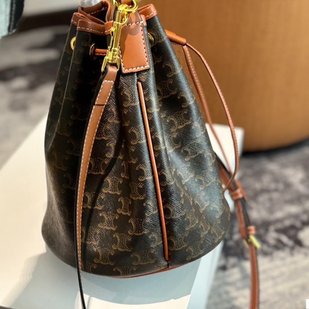 Celine Clara Triomphe Canvas Calfskin Brown 23cm/9.1in