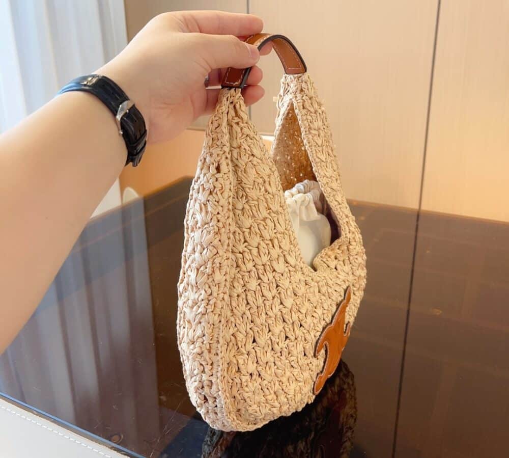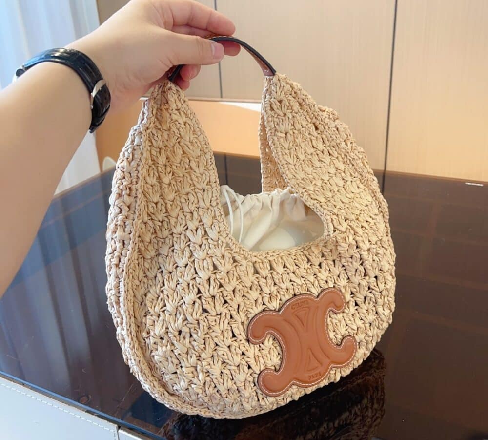 Celine //Classic Panier Hobo Bag In Raffia And Calfskin //Natural Tan //30cm