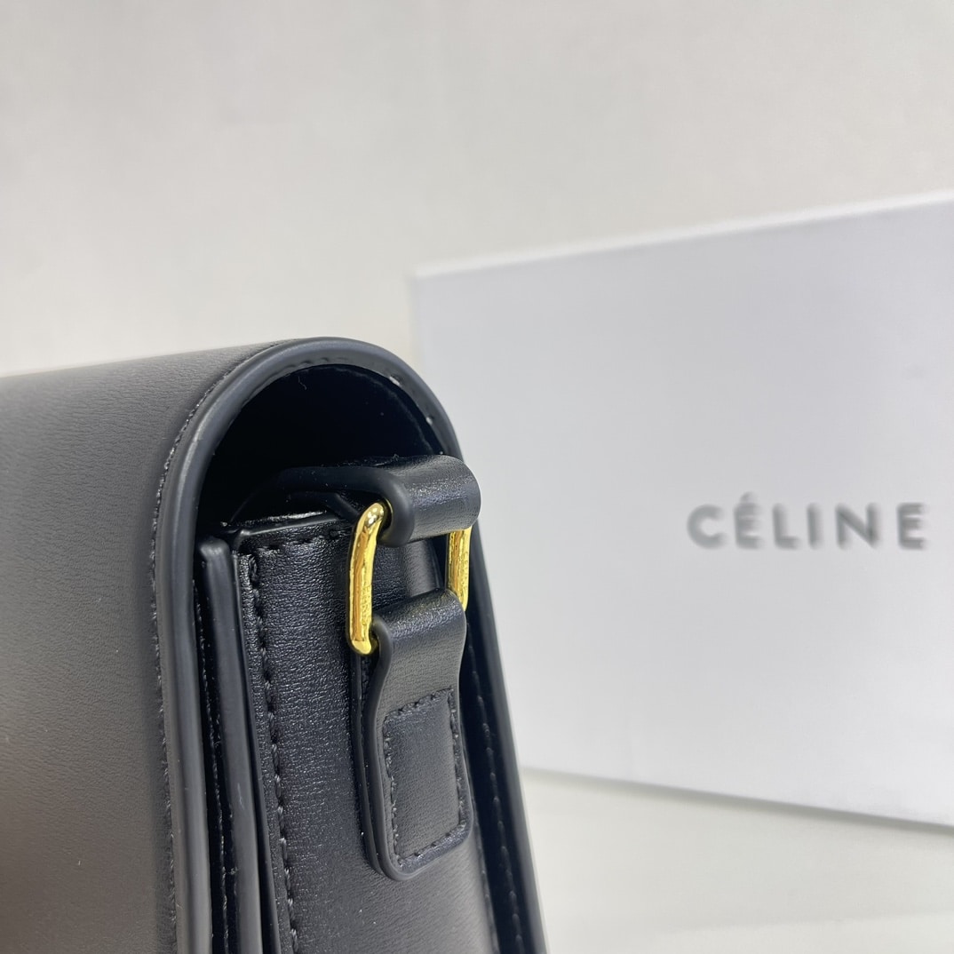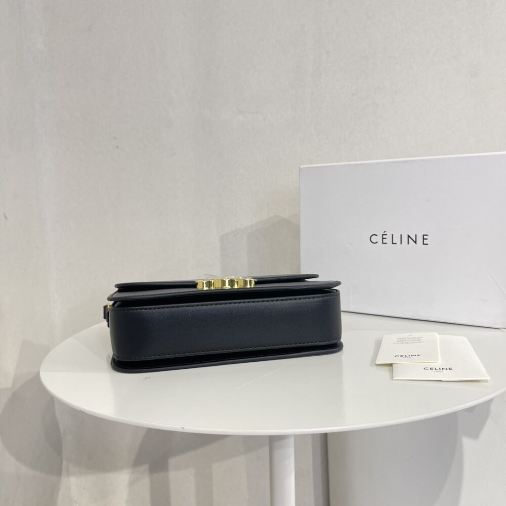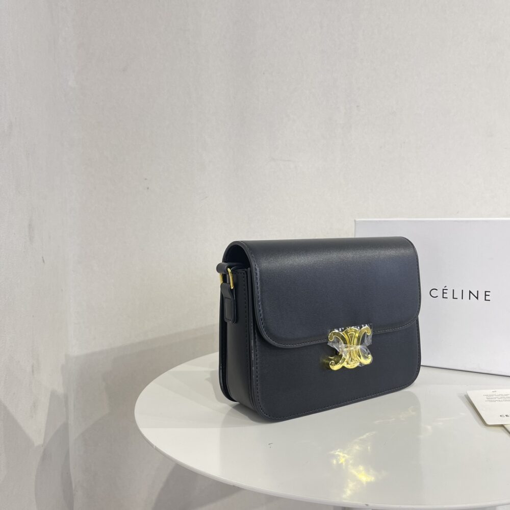 Celine Classique Triomphe Bag In Shiny Calfskin Black 18cm