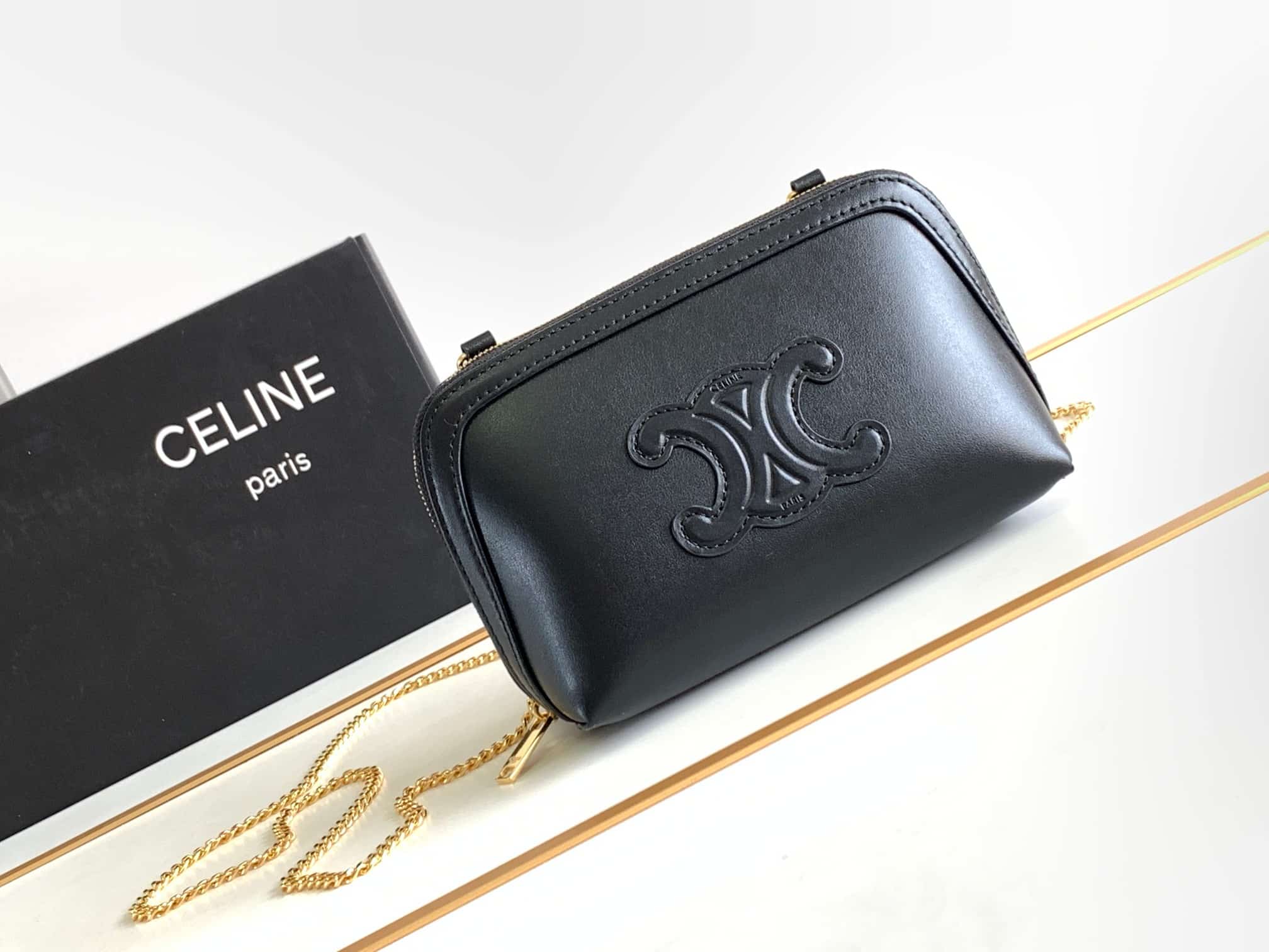 CELINE CLUTCH ON CHAIN CUIR TRIOMPHE IN SMOOTH CALFSKIN BLACK 10E383DR838NO 16CM