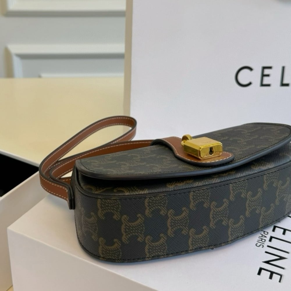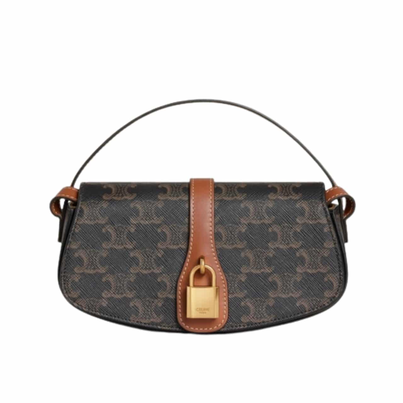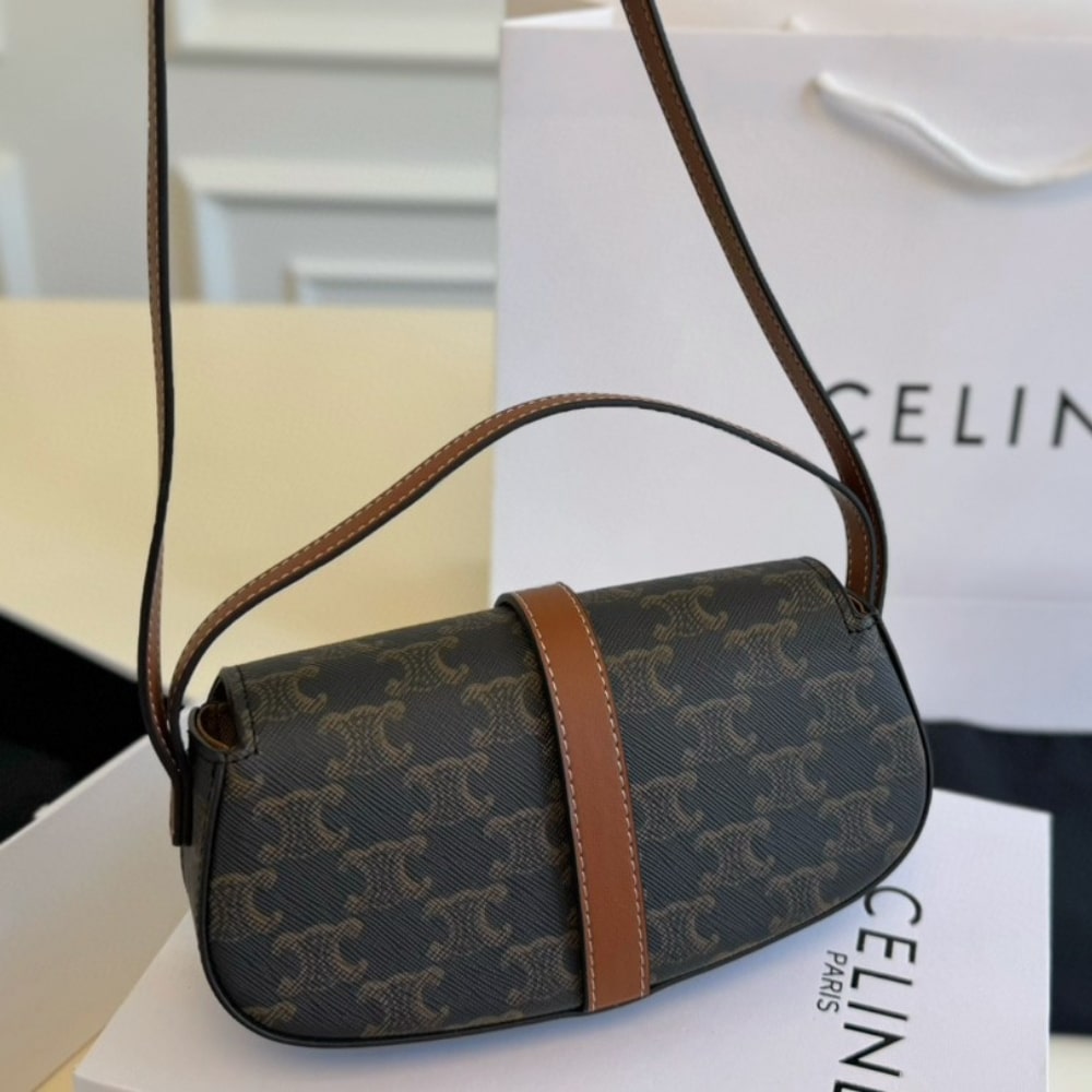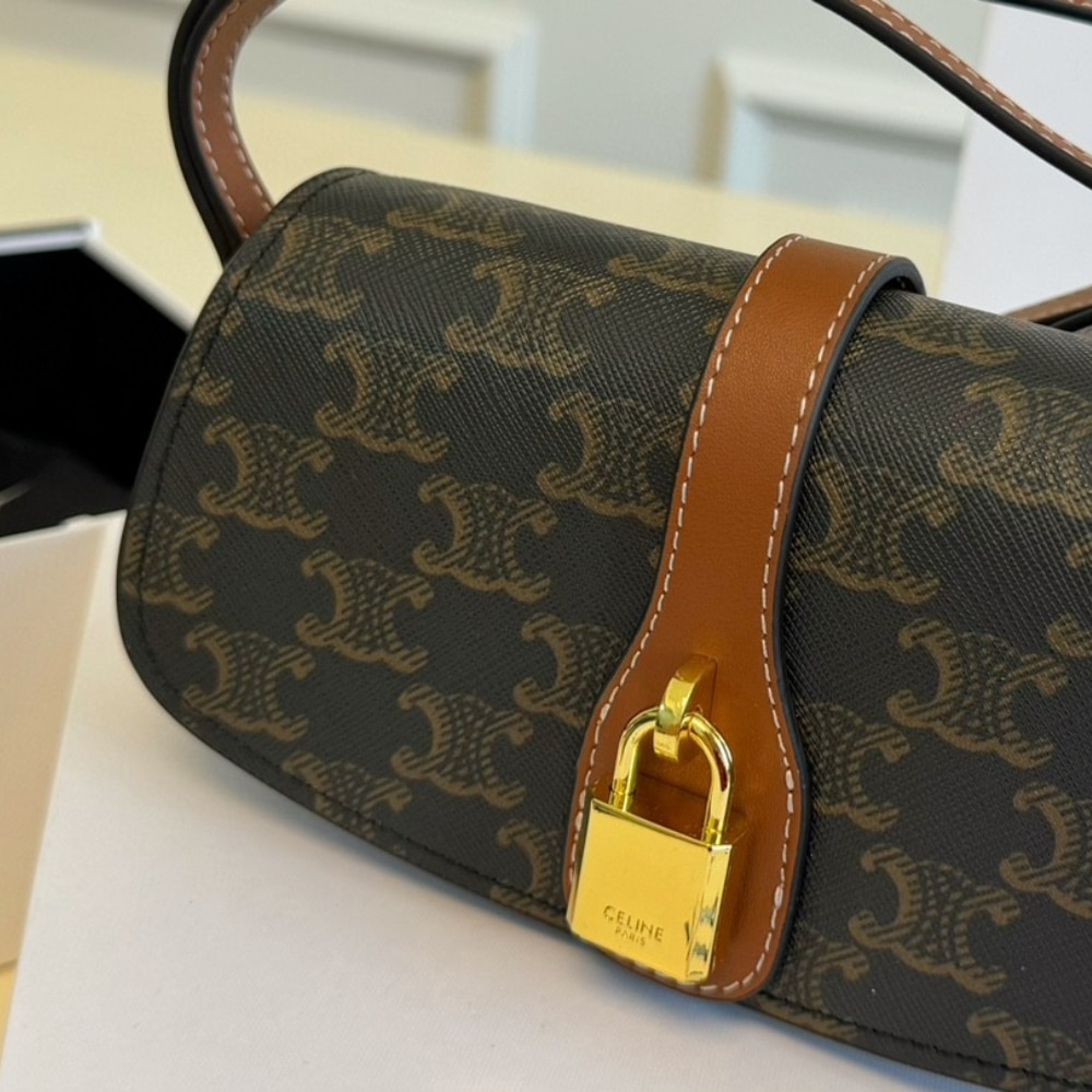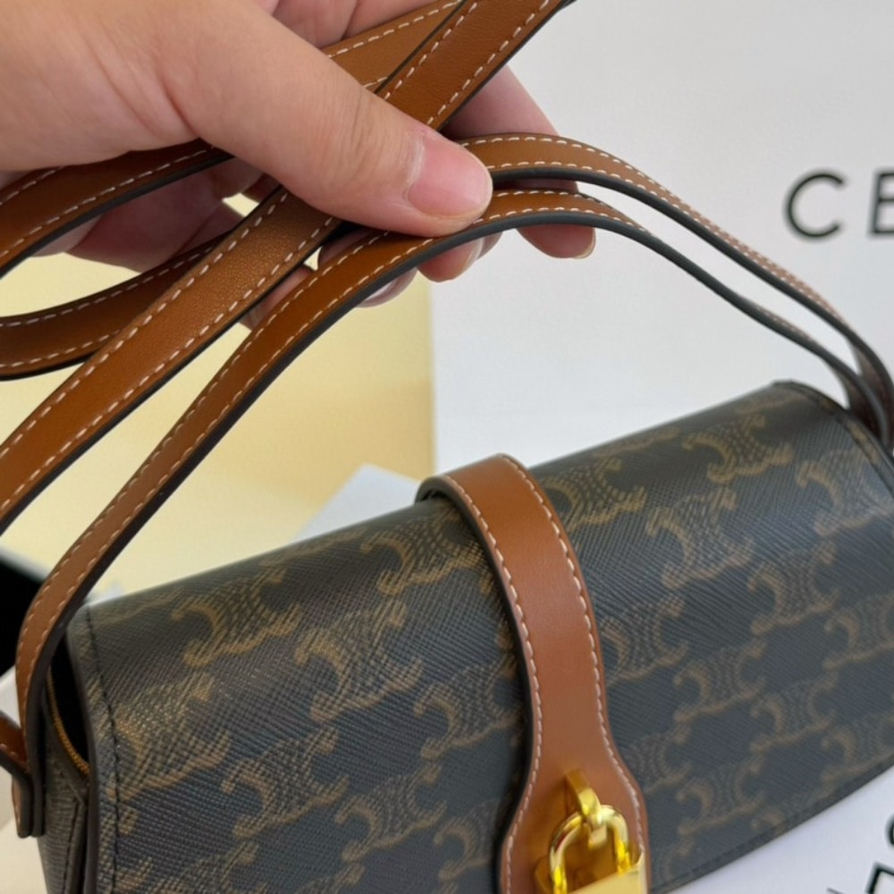 Celine Clutch On Strap Tabou In Triomphe Canvas And Calfskin Tan 20cm 10I592DQ2 04LU
