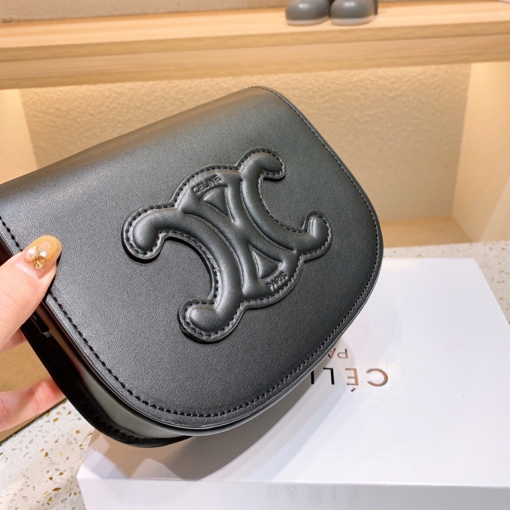 Celine Folco Cuir Triomphe In Smooth Black 198263DU3 38NO / 18 cm / 7 inches
