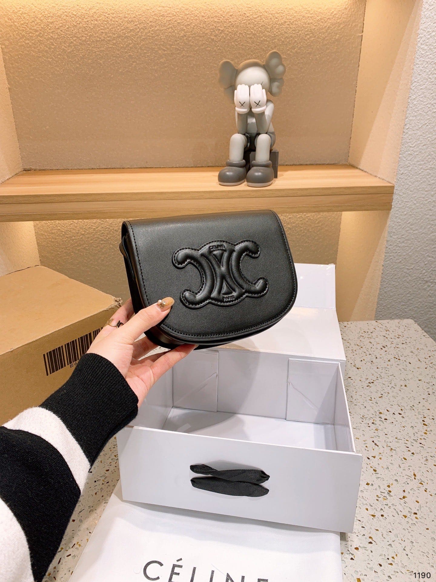 Celine //Folco Cuir Triomphe In Smooth Calfskin //Black //18cm