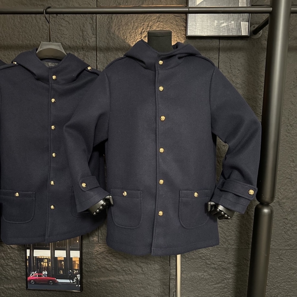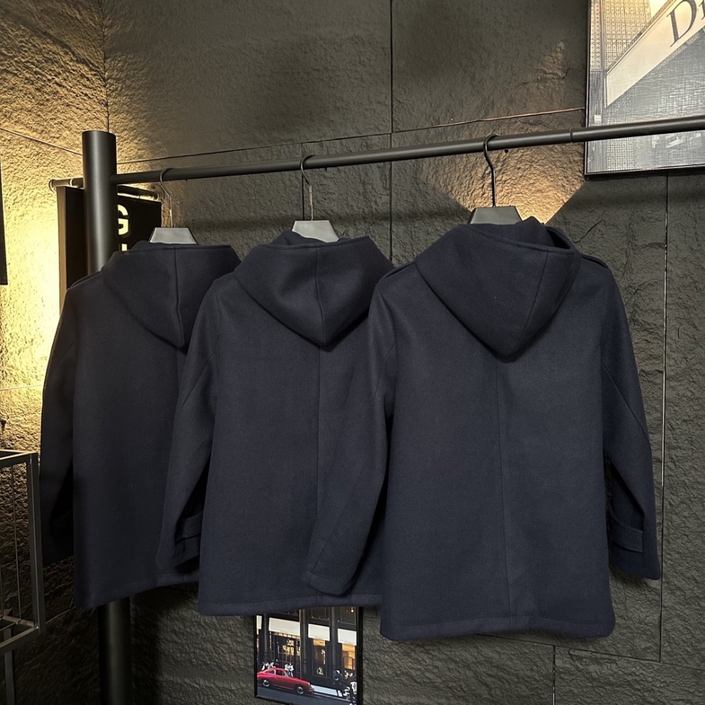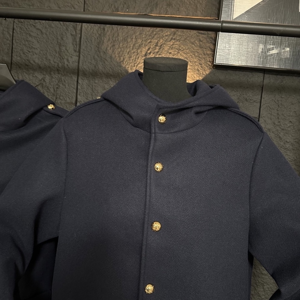 - High collar with hood