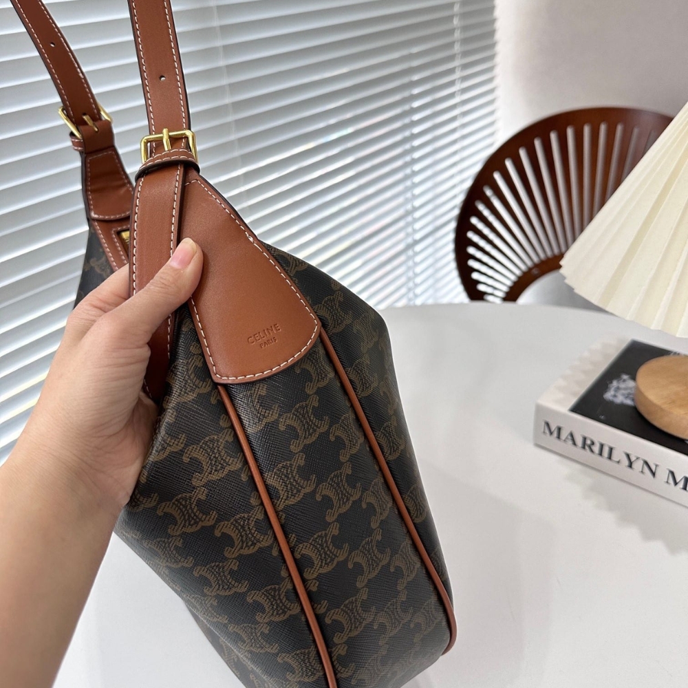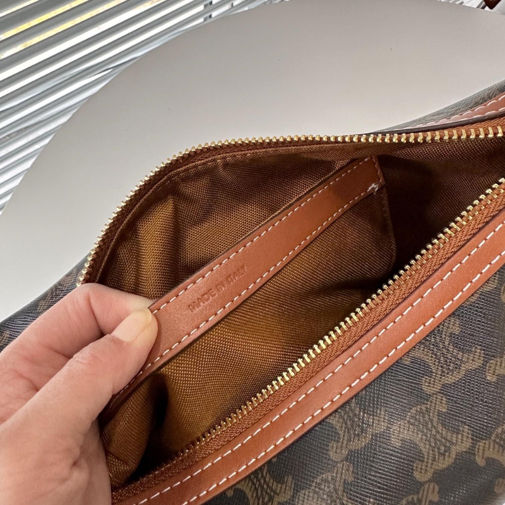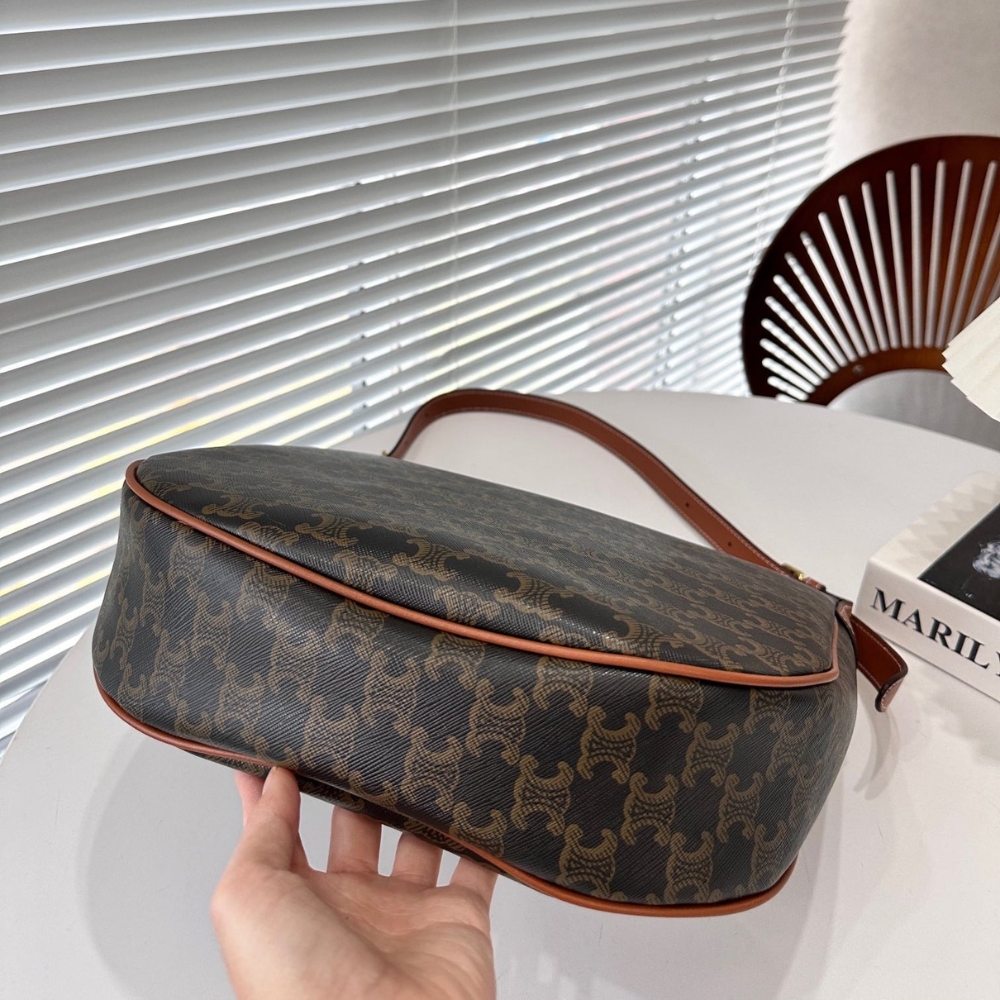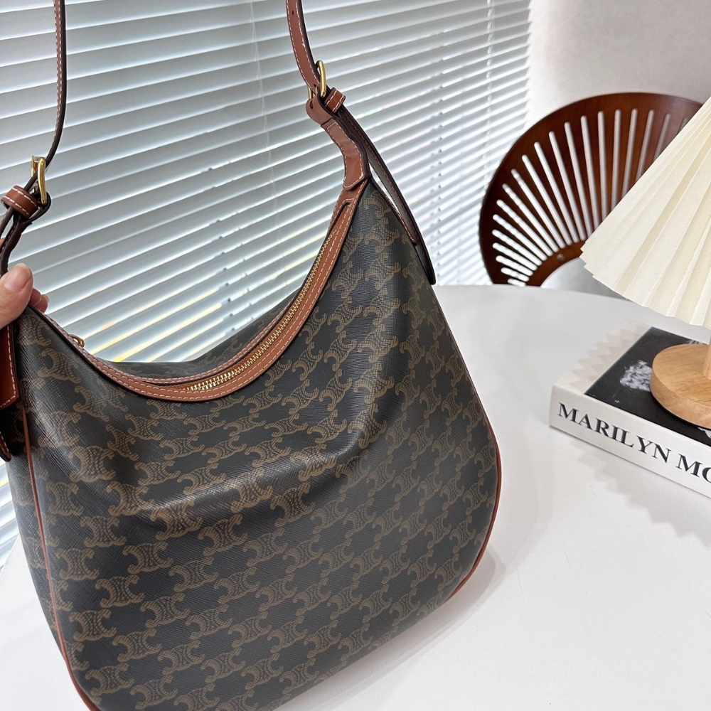 Celine Medium Heloise Bag In Triomphe Canvas / Dark Grey & Tan / 11.8 x 11.2 x 3.1 inches / Shoulder Bag