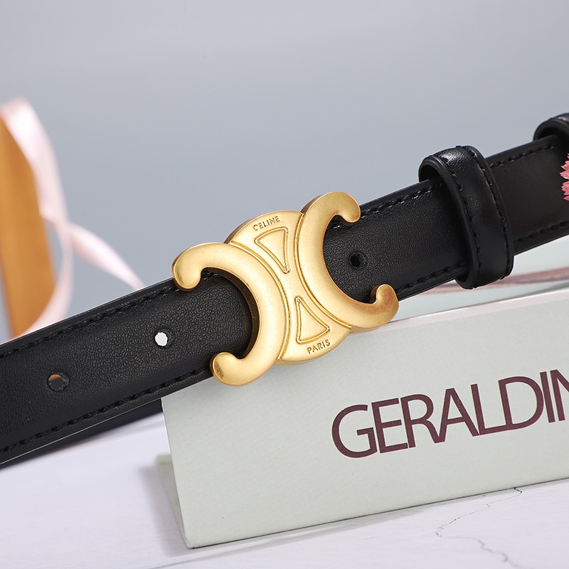 CELINE MEDIUM TRIOMPHE BELT IN TAURILLON LEATHER BLACK 25MM 45AK93A01 38NO