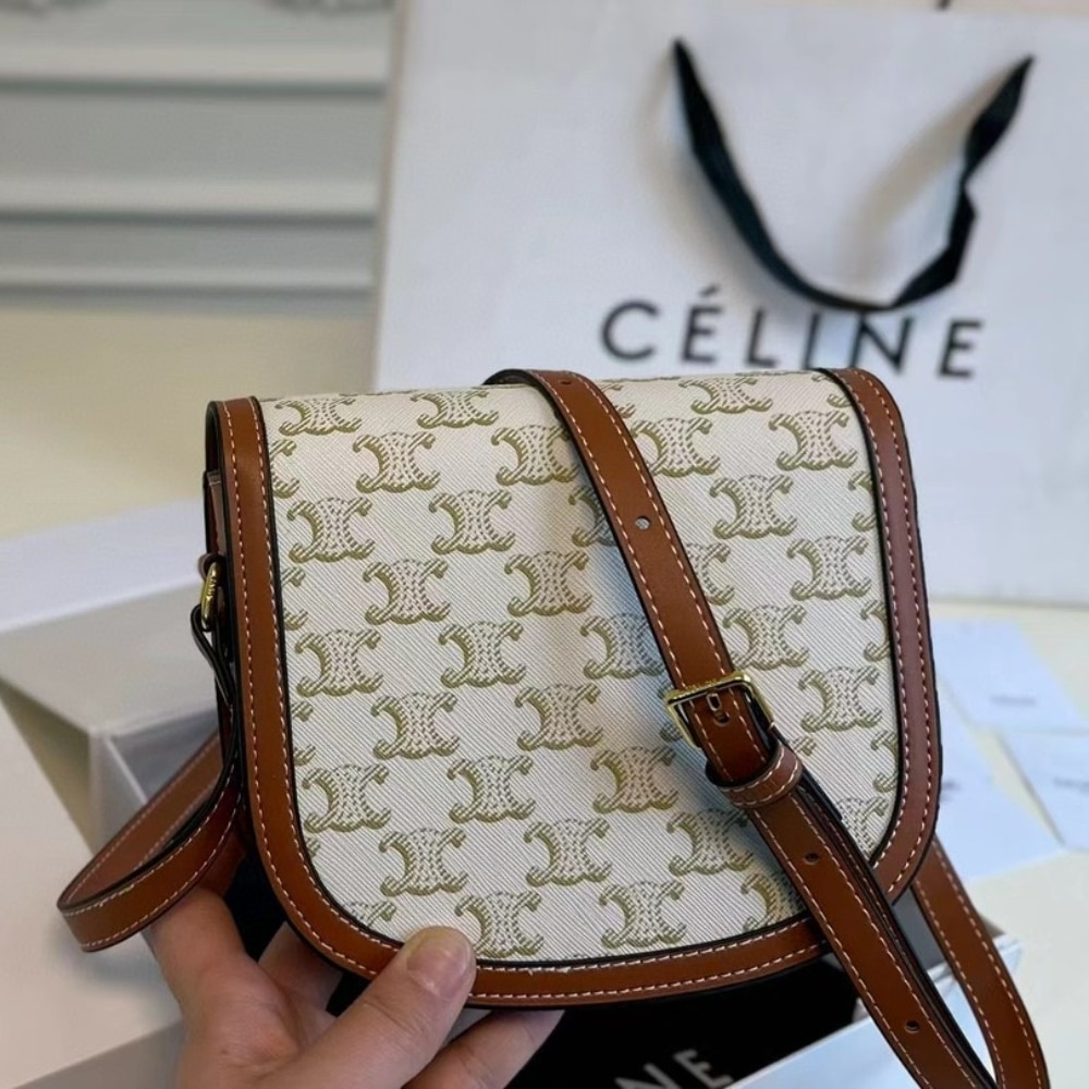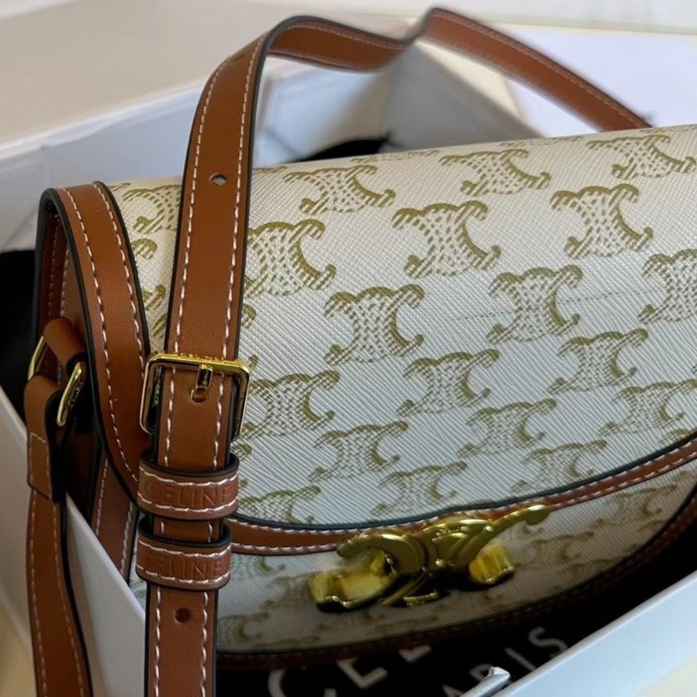 Celine Mini Besace in Triomphe Canvas And Calfskin White 18cm 196702BZJ 01BC