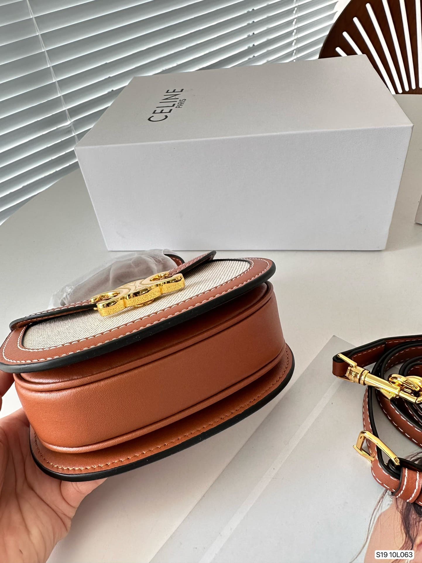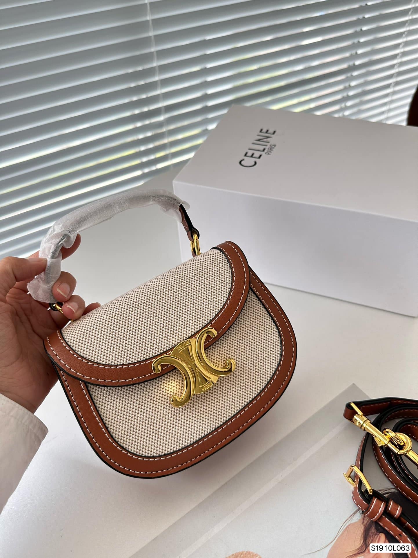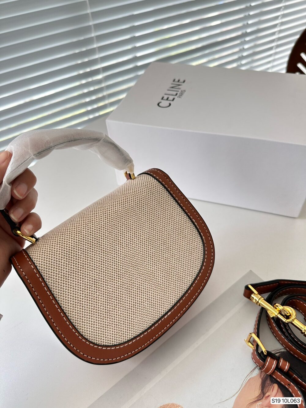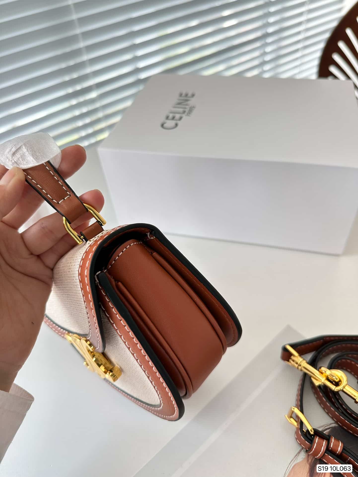 Celine Mini Besace Triomphe In Textile And Calfskin Natural 16cm