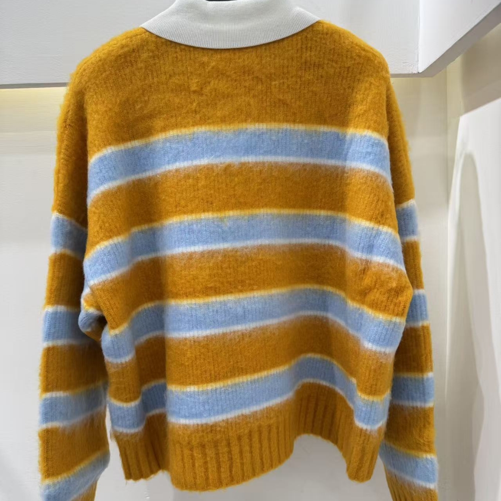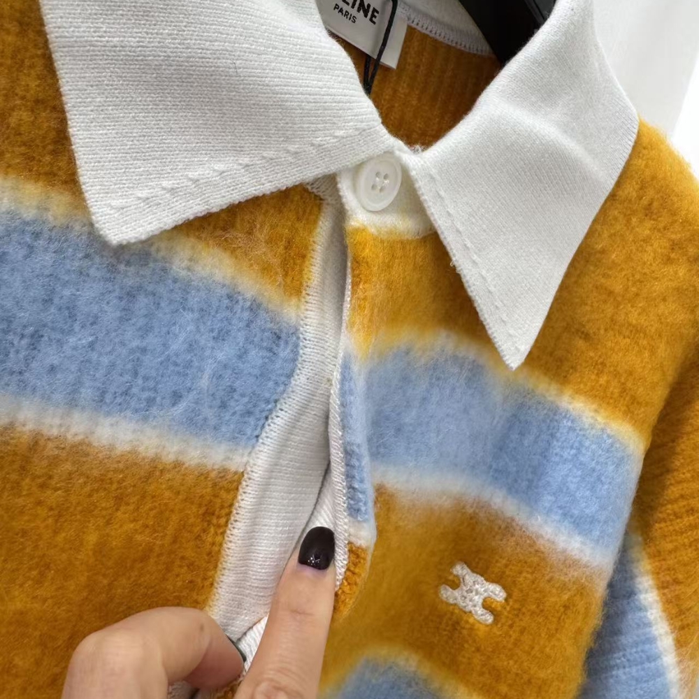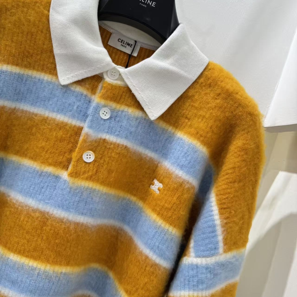 CELINE POLO SWEATER IN BRUSHED STRIPED COTTON OCHRE AND LIGHT BLUE RY0FQ0ZQJ GBO7