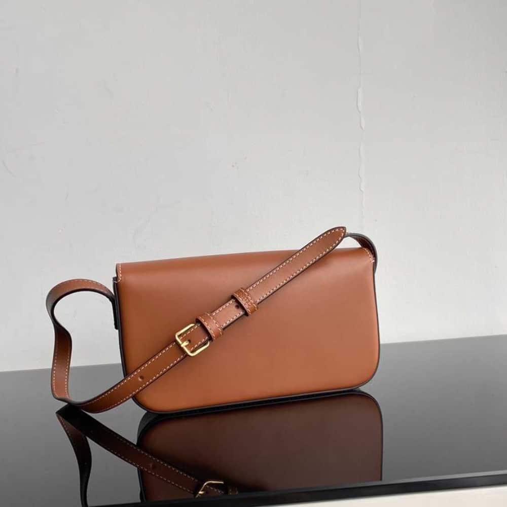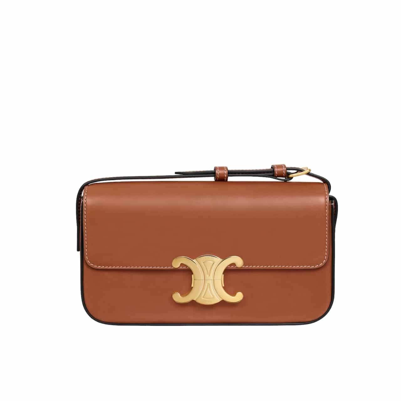 CELINE TRIOMPHE SHOULDER BAG IN SHINY CALFSKIN BROWN 194143BFN04LU 20CM