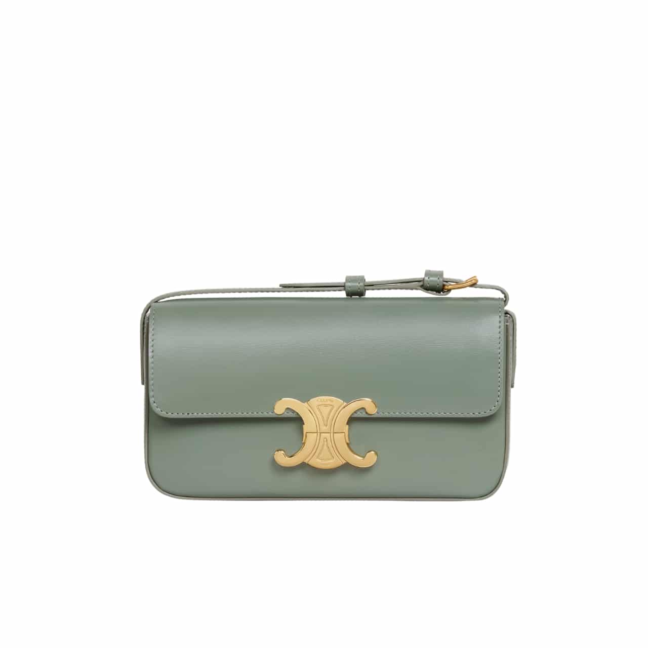 CELINE TRIOMPHE SHOULDER BAG IN SHINY CALFSKIN GREEN 20CM 194143BF4 31LA