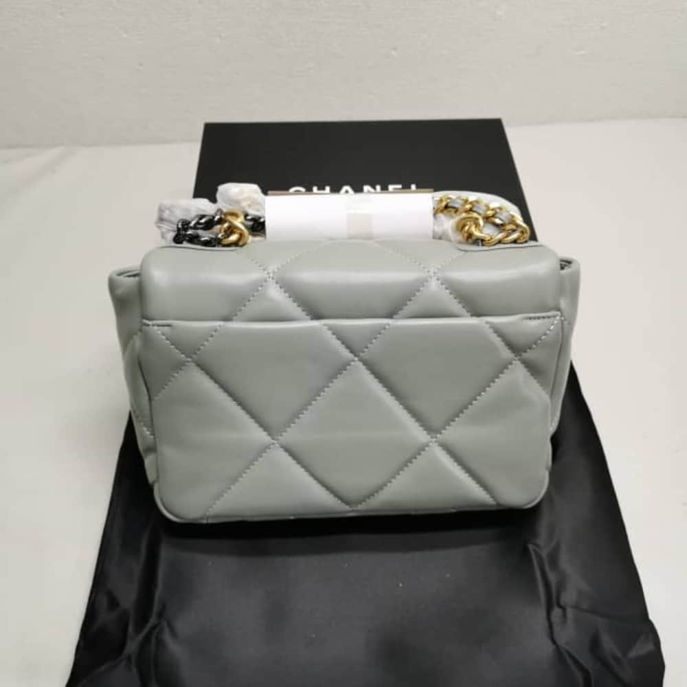 Chanel 19 Flap Bag Shiny, Gold-Tone, Silver-Tone & Ruthenium-Finish Metal / Light Grey / 26cm / 10.2 inches