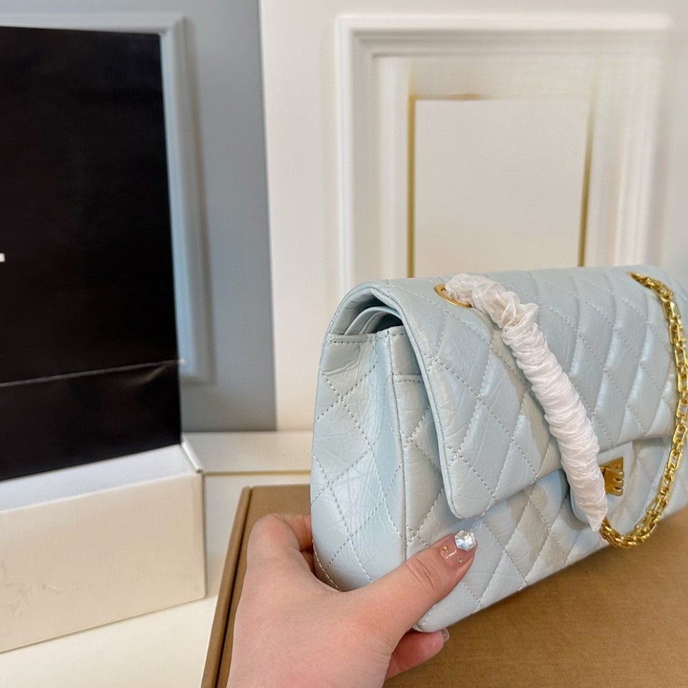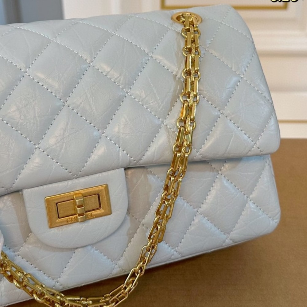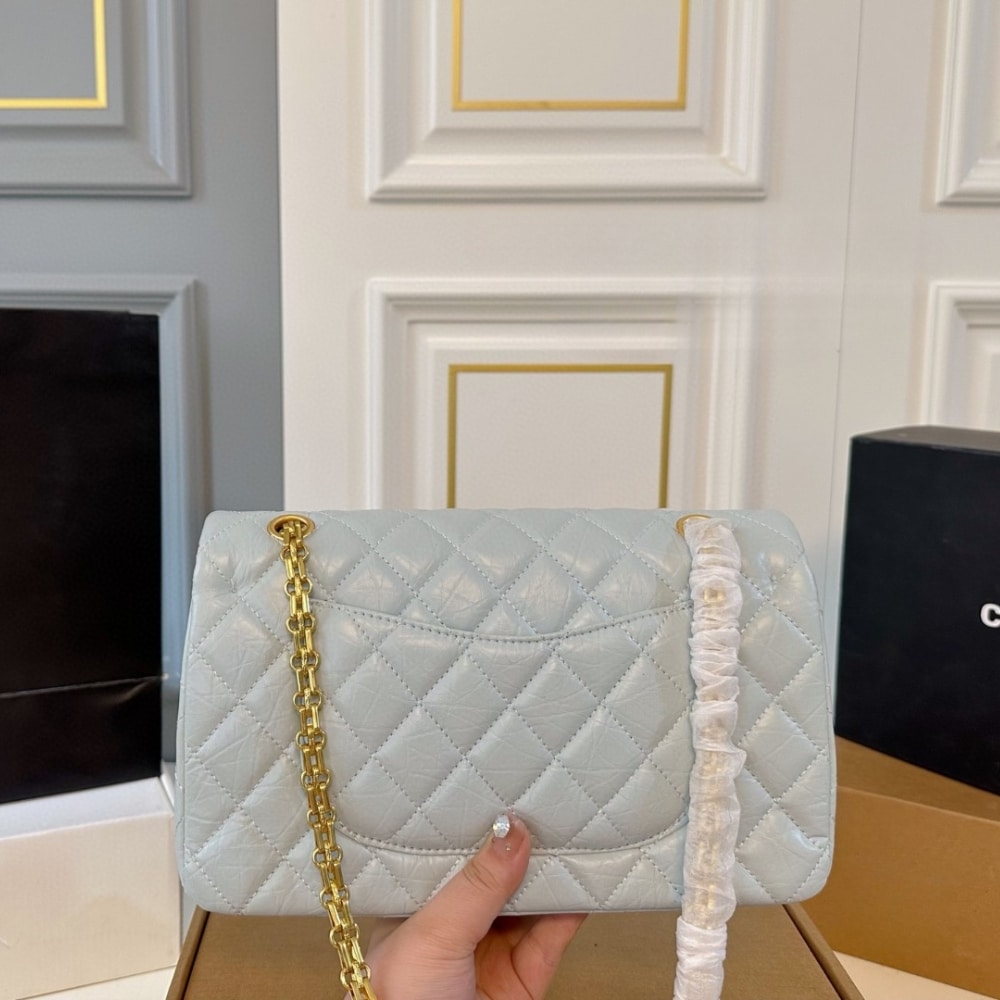 Chanel 2.55 Handbag Gold Tone Metal Light Blue / 25Cm / 9.8 inches