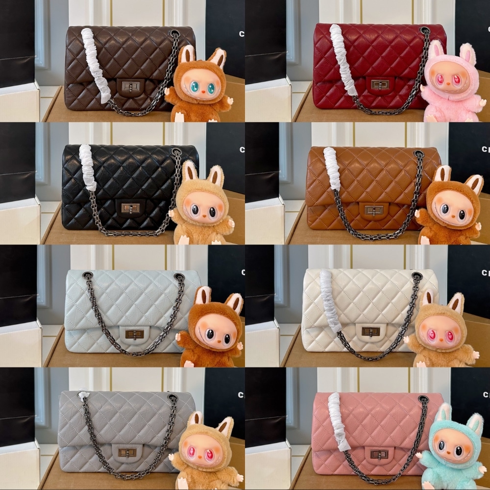 Chanel 2.55 Handbag Silver Tone Metal Black / 25 cm / 9.8 inches