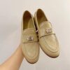 CHANEL 20B QUILTED BOY LEGO METAL LOGO GOLD MULE SLIP ON FLAT LOAFERS BEIGE