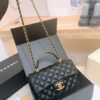 Chanel 22B Flap Bag With Gold Hardware Top Handle / Black 21Cm