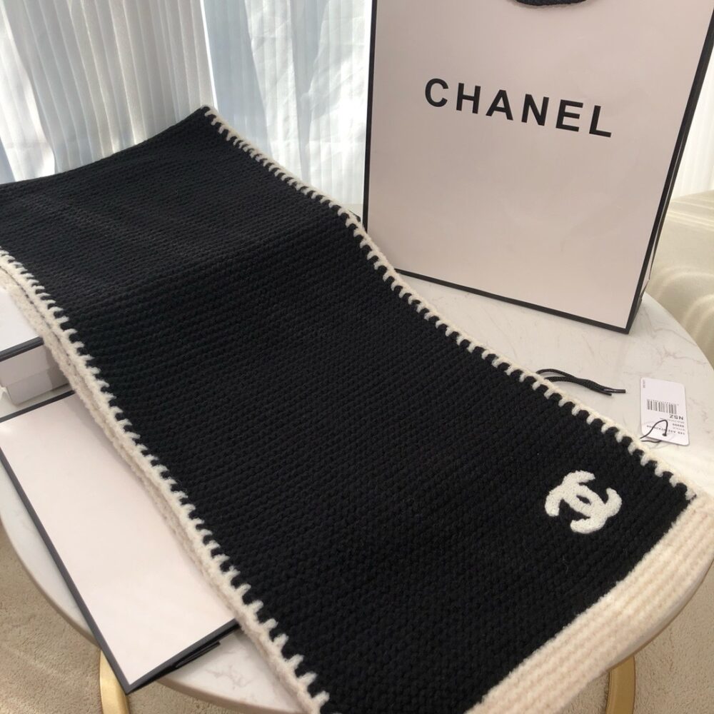 Chanel 23A Cashmere Scarf Black And White 170Cm