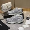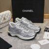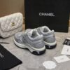 Chanel 23C Silver Metallic Cc Logo Lace Up Flat Runner Trainer Sneaker Gray