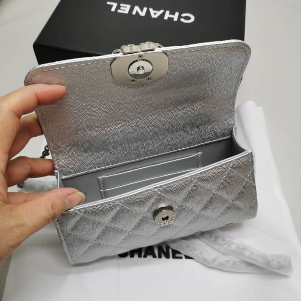 Chanel 23P Clutch With Chain Bag With Top Handle Silver / 18cm / 7 inches