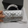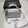 Chanel 23P Clutch With Chain Bag With Top Handle Silver 18Cm