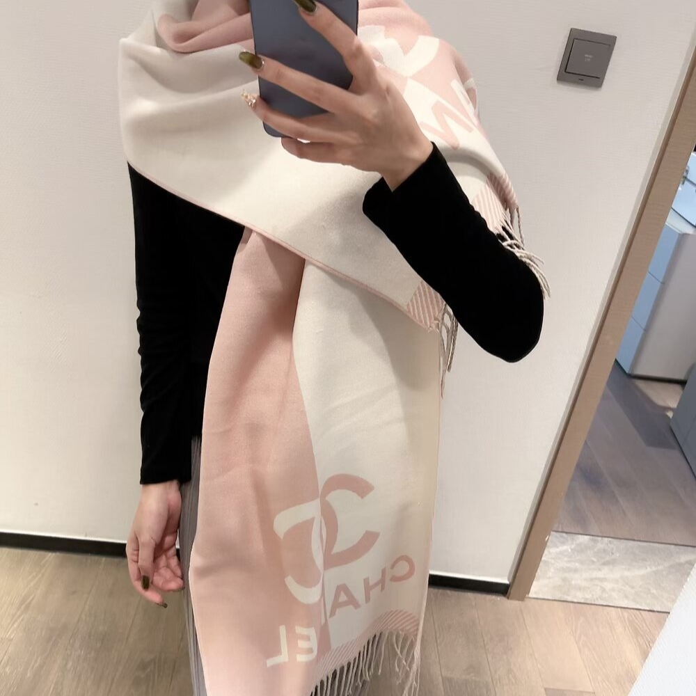 Chanel 24A Half color Wool Scarf / Pink and white / 70.9 inches / Cozy Scarf / Chic Style