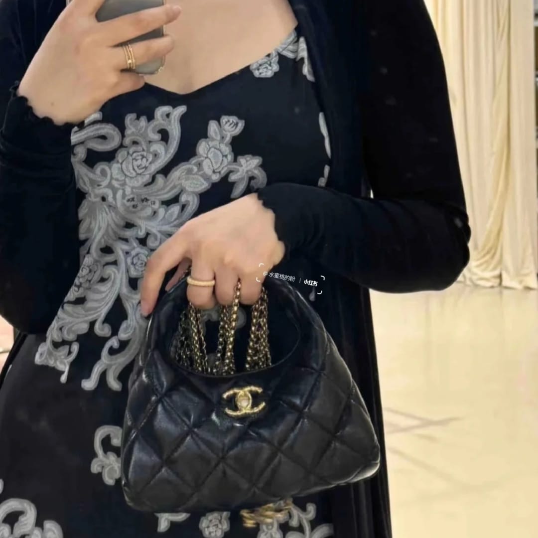 Chanel 24A Limited Edition Tassel Chain Hobo Bag In Black 20cm/7.9in