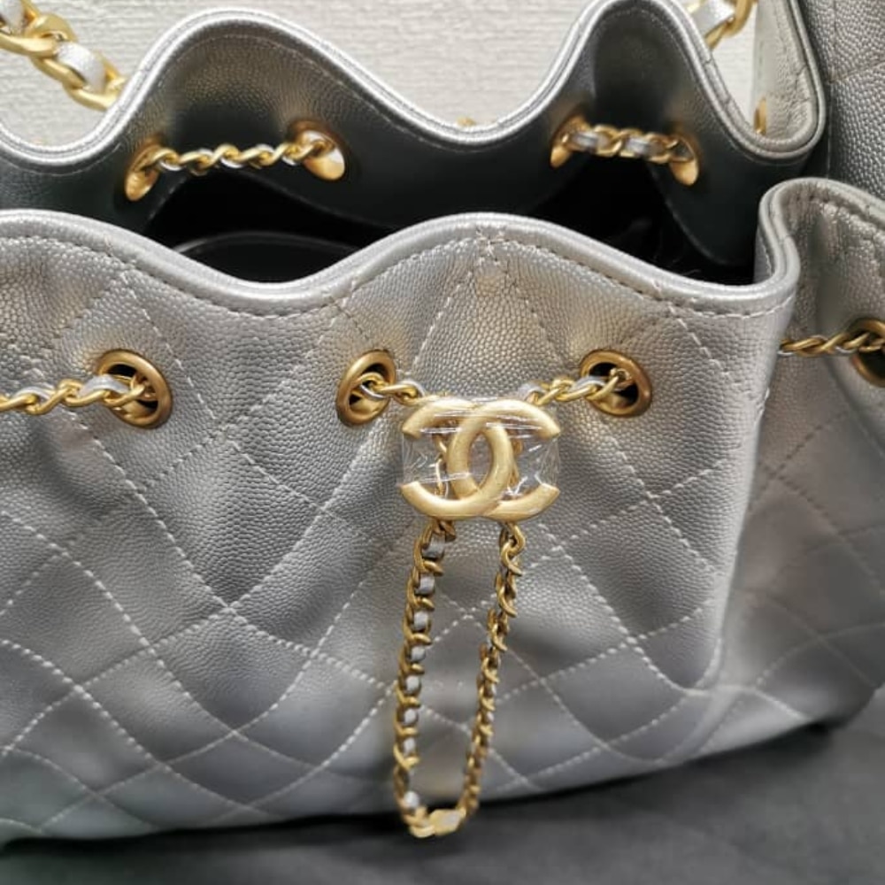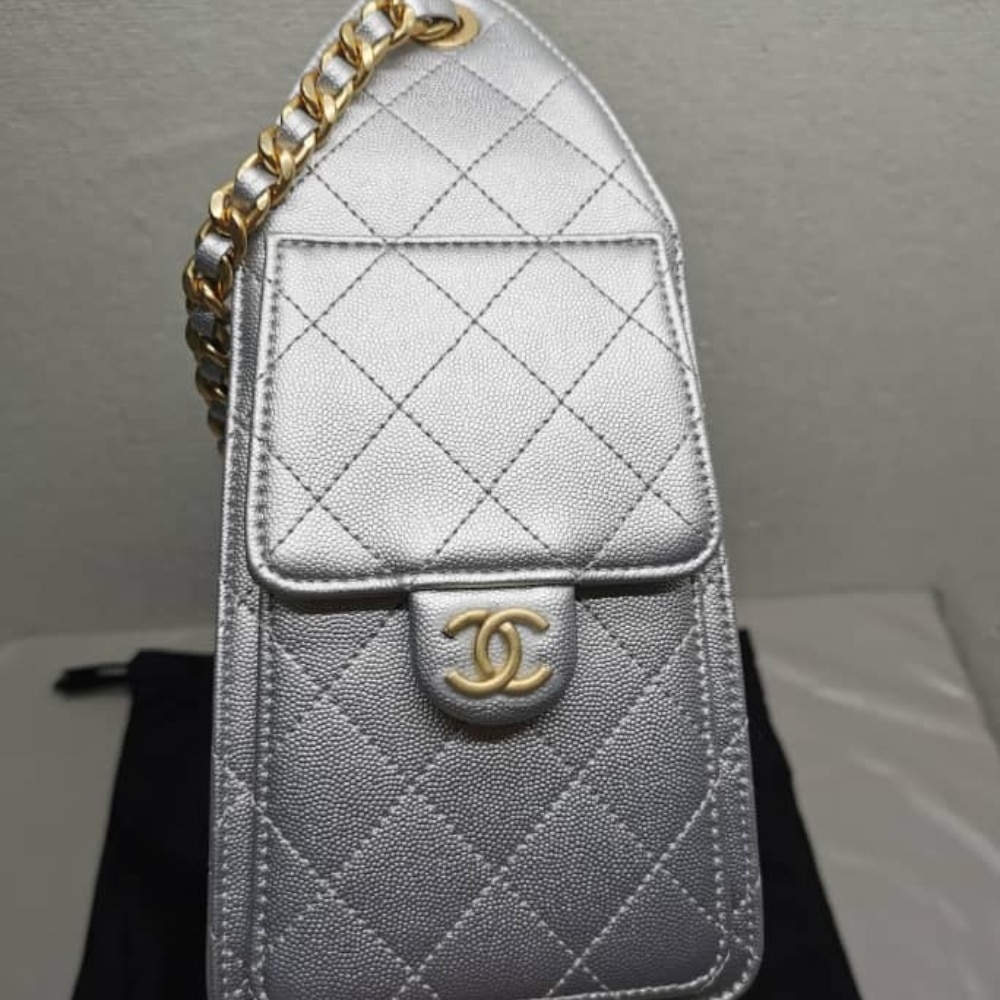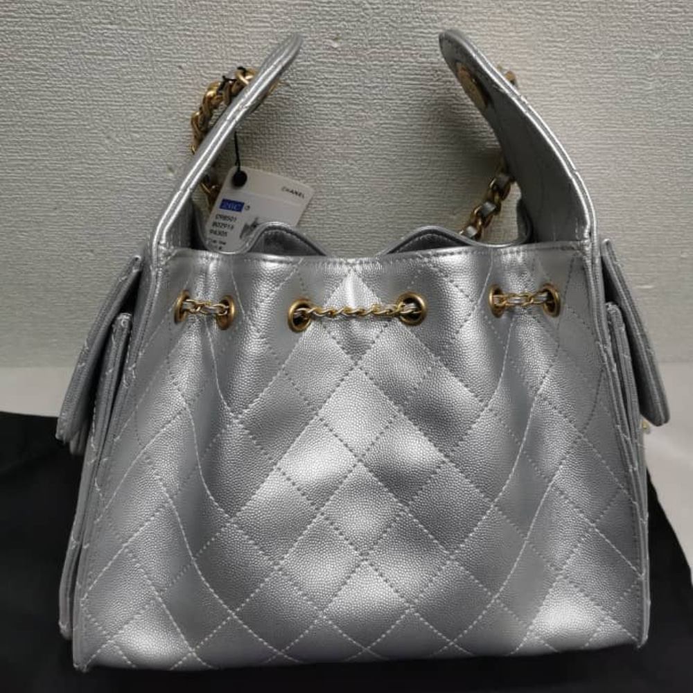 Chanel 25 Small Handbag Silver / 11.8 x 10.2 x 5.5 inches / Gold-Tone Hardware / Daily Style / Handle Bags