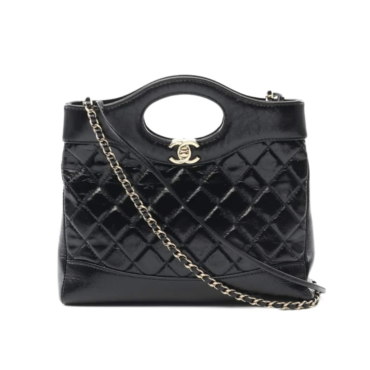 Chanel 31 Large Shiny Leather Handle Bag Gold Hardware Black / 37cm / 14.5 inches