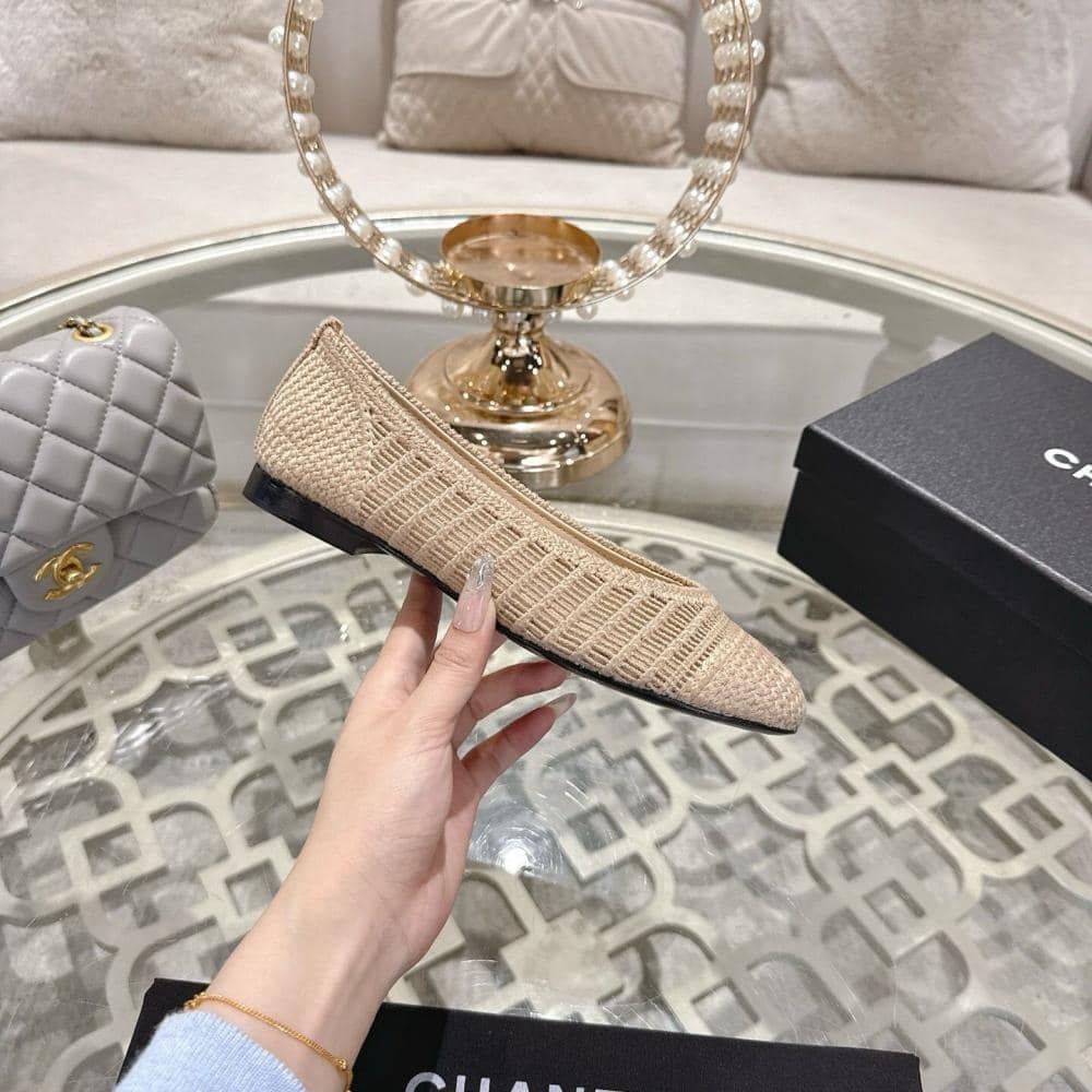 CHANEL BALLET FLAT RAFFIA WHITE AND BEIGE G46352 B19806 NAFBO