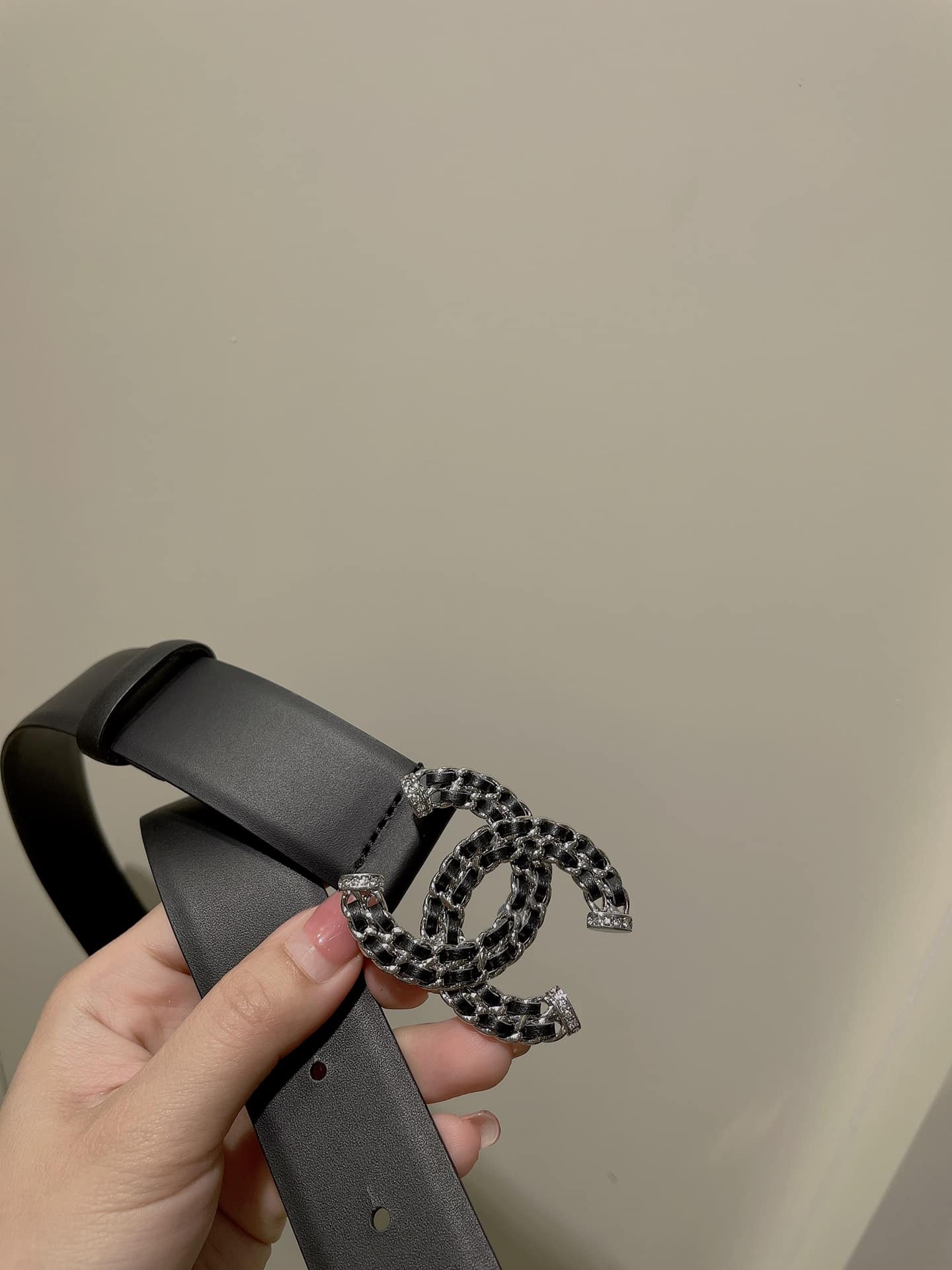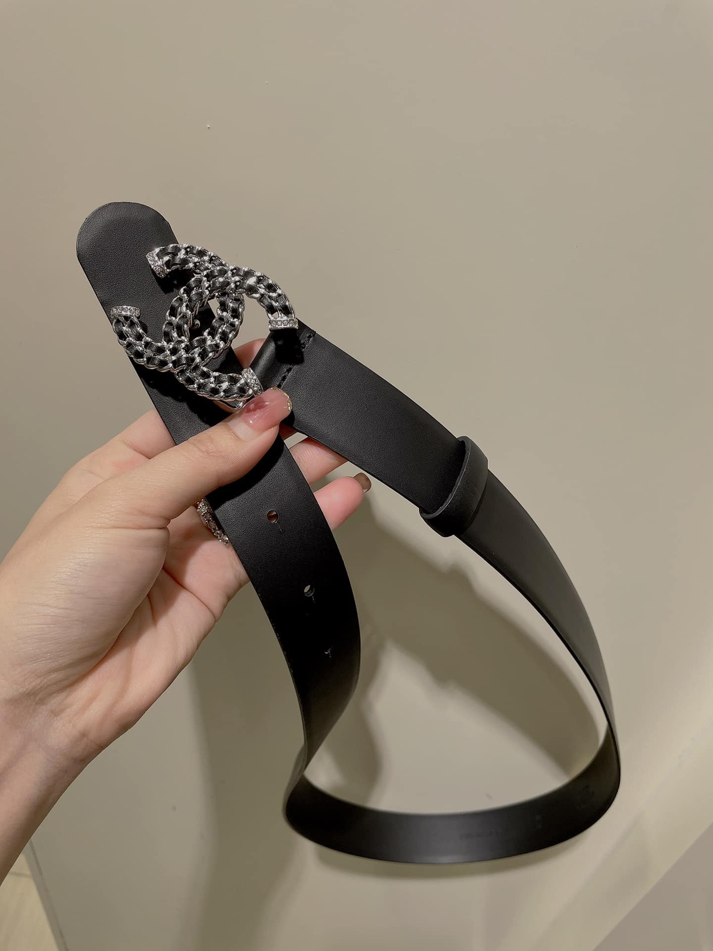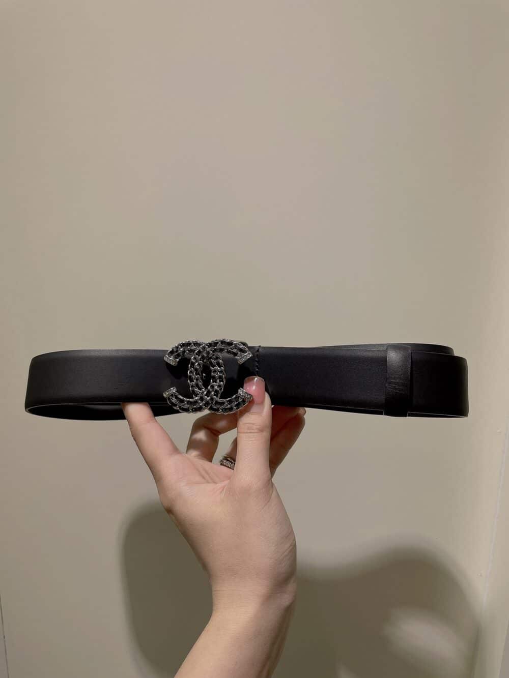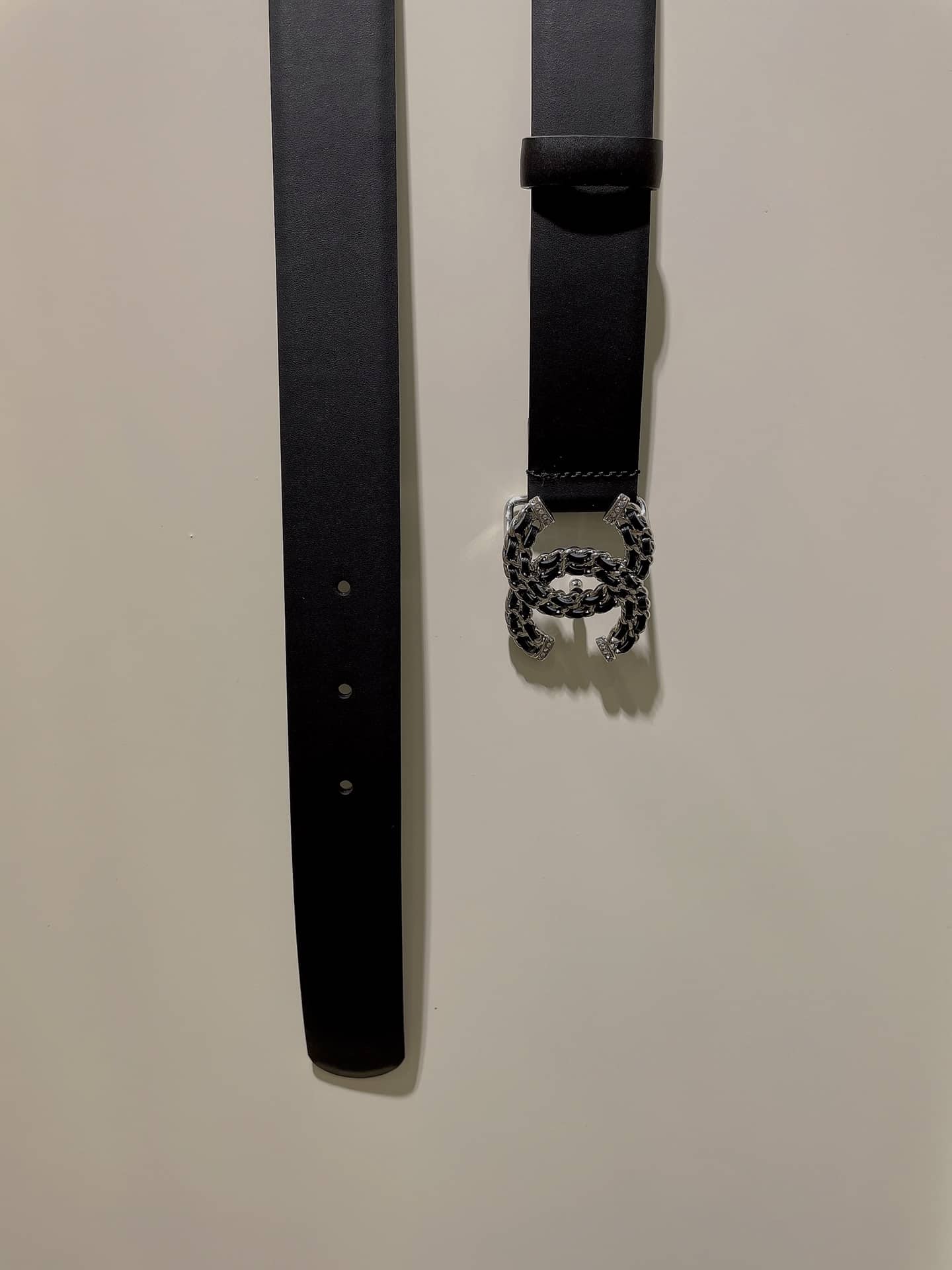 CHANEL BELT CALFSKIN GOLD METAL STRASS BLACK 3CM