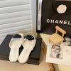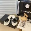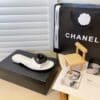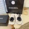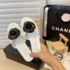 CHANEL BLACK CAMELLIA SLIDES WHITE