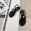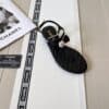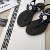 CHANEL BLACK QUILTED LEATHER WITH WHITE CAMELLIA CC LOGO SANDALS G45258 X01000 94305