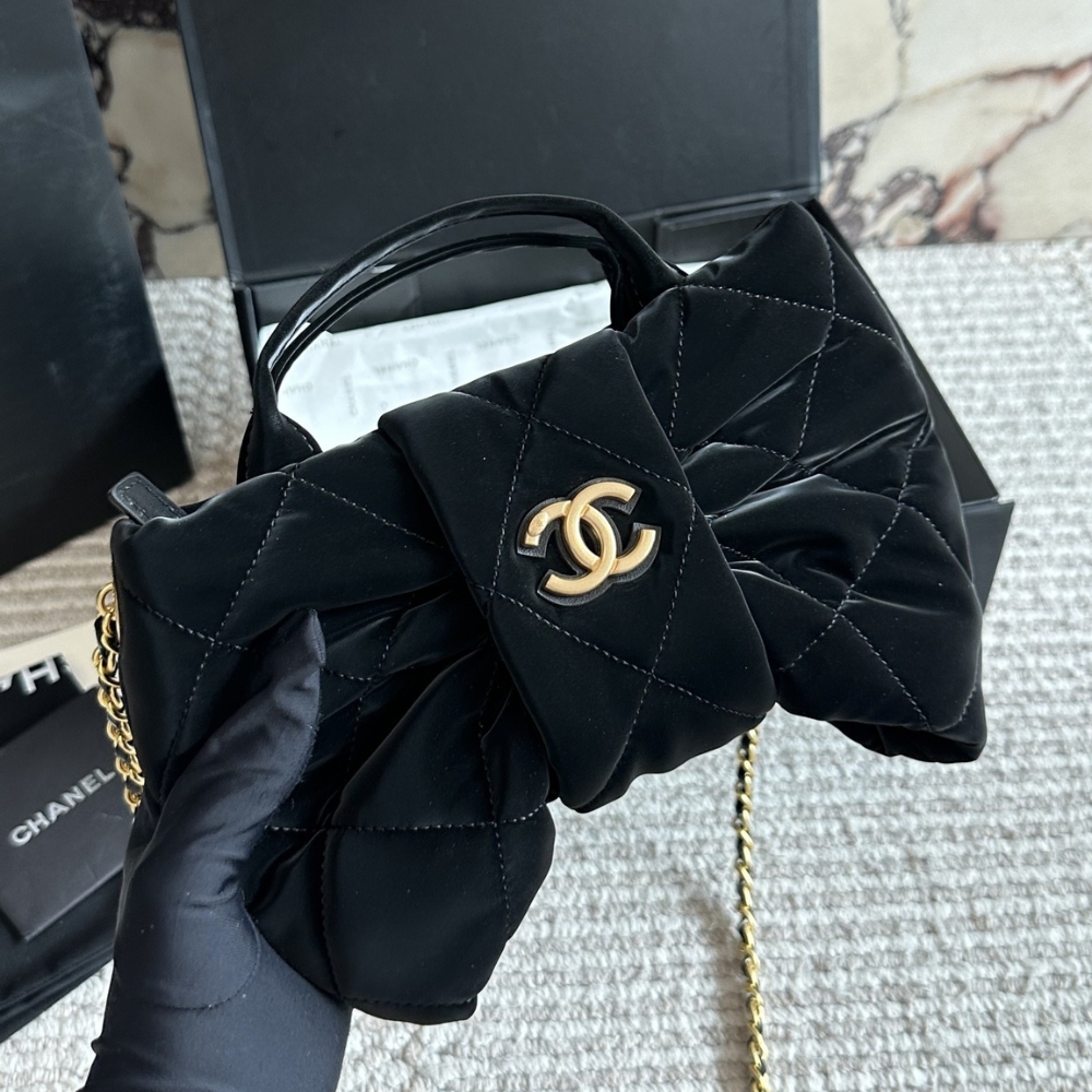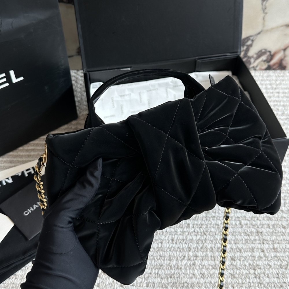 Chanel Bow Bag Black / 13.8 x 7.9 inches / Velvet Effect Nylon / Fit Daily Essentials / Daily Bags