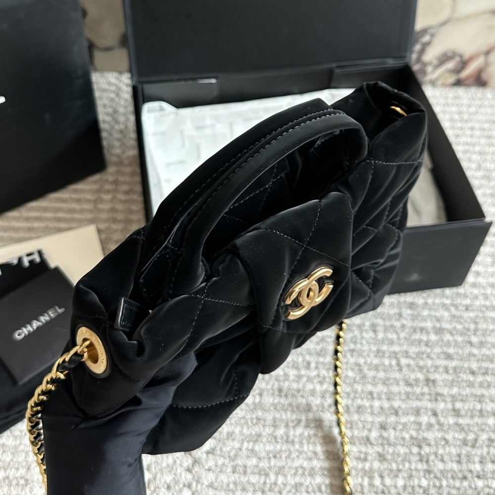 CHANEL BOW BAG VELVET EFFECT NYLON AND GOLD TONE METAL BLACK 35CM AS5851 B22154 94305