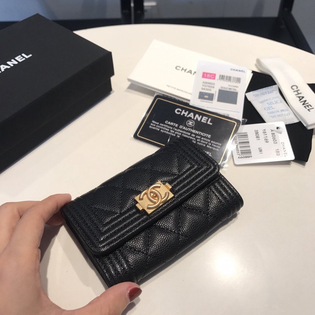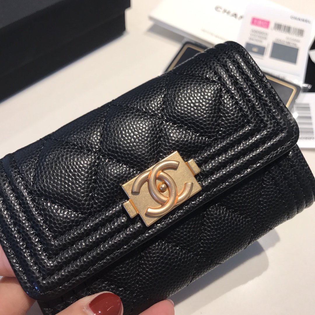 Chanel Boy Chanel Flap Card Holder Black A80603 Y07659 94305 / 11.5 cm / 4.5 inches
