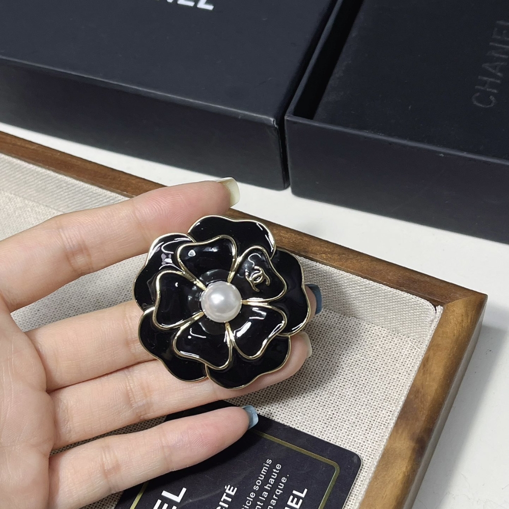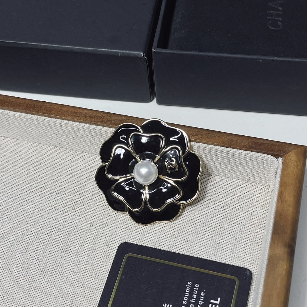 Chanel Brooch – Metal & Resin, Gold, Black & Pearly White ABG238 B21624 U3367