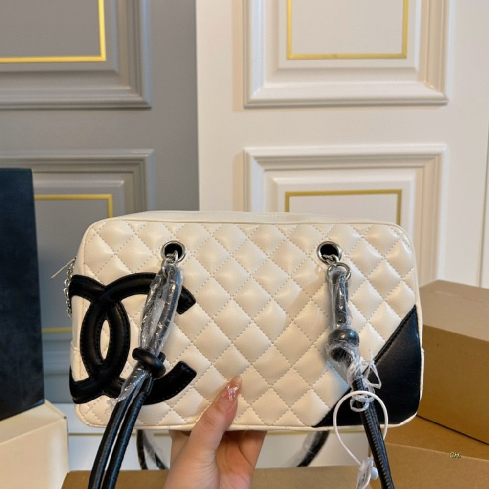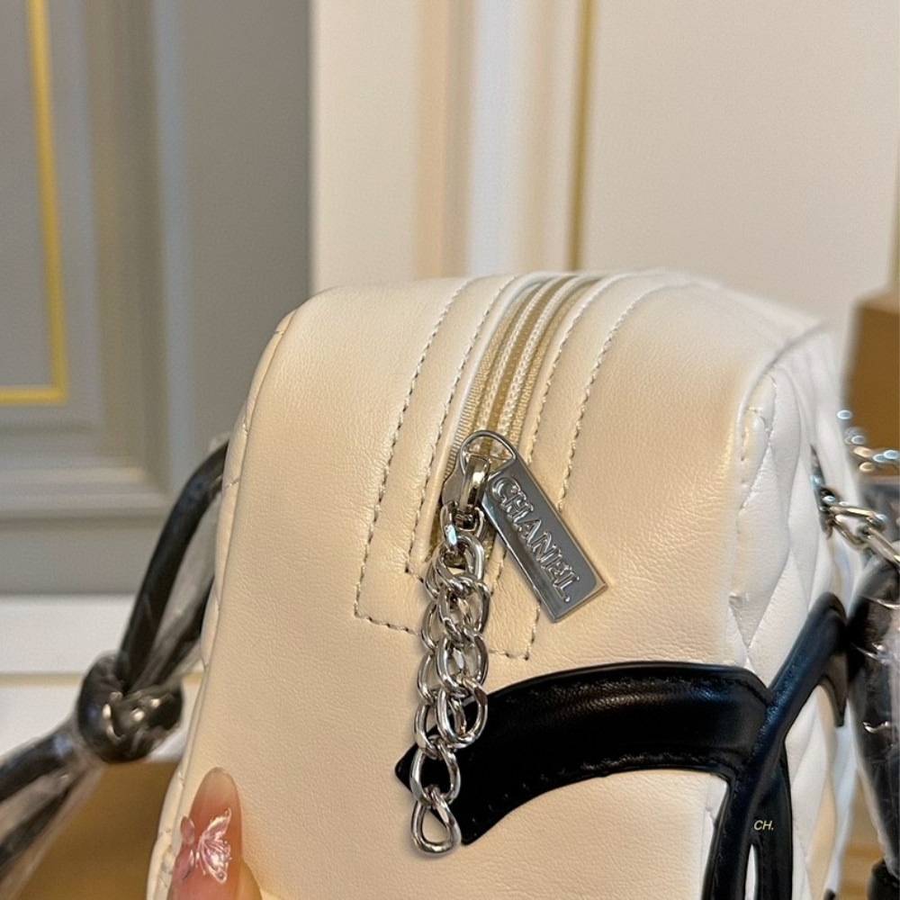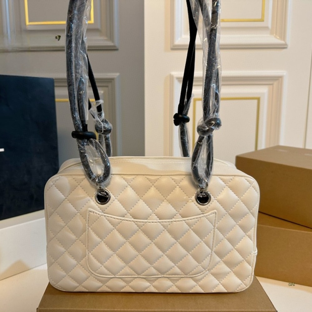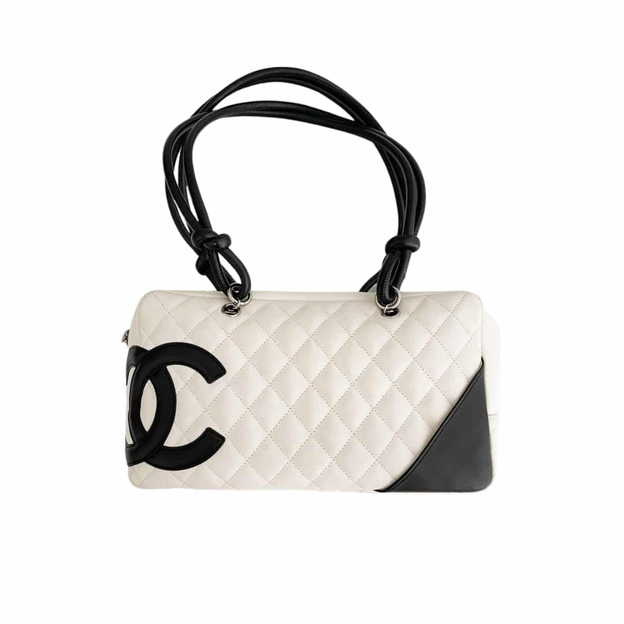 Chanel Cambon Bowler Bag Quilted Leather White And Black 26 cm / 10.2 inches