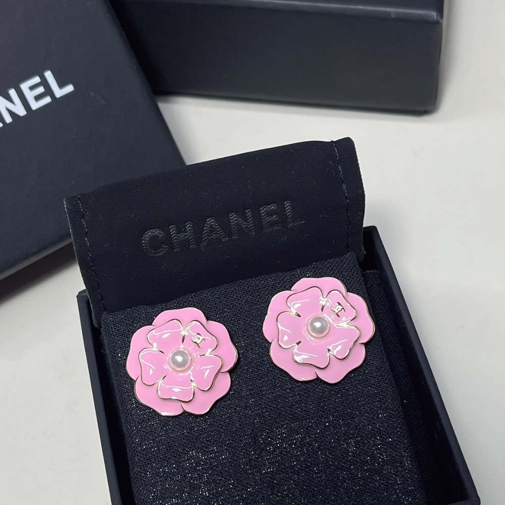 CHANEL CAMELLIA EARRINGS PINK ABG218 B21624 U3368