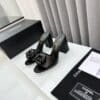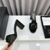 CHANEL CAMELLIA MEDIUM HEEL SLIPPERS BLACK