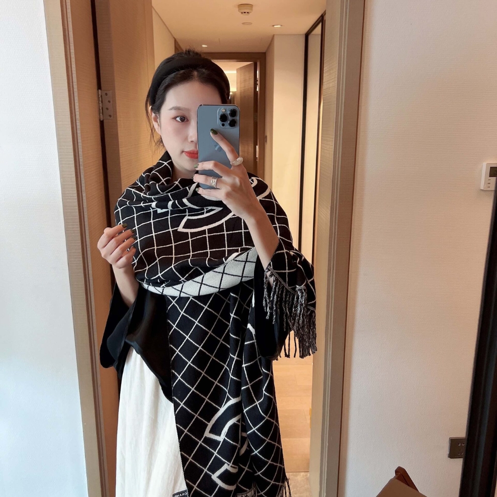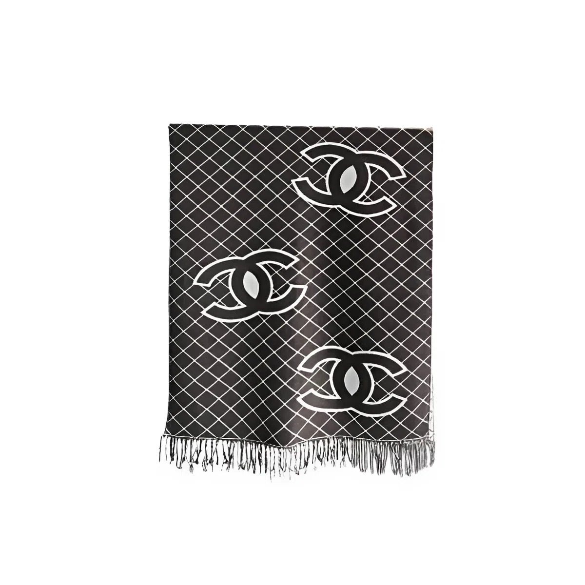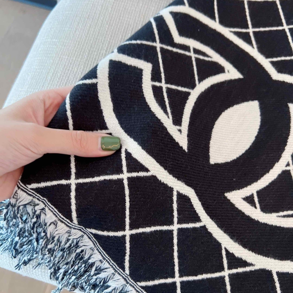 CHANEL CASHMERE SHEARLING SCARF BLACK