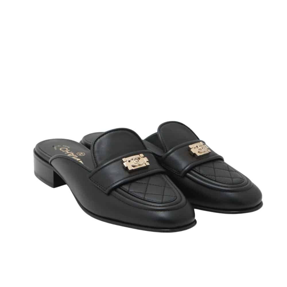CHANEL CASUAL PAIN LAETHER ELEGANT MULES SANDALS BLACK