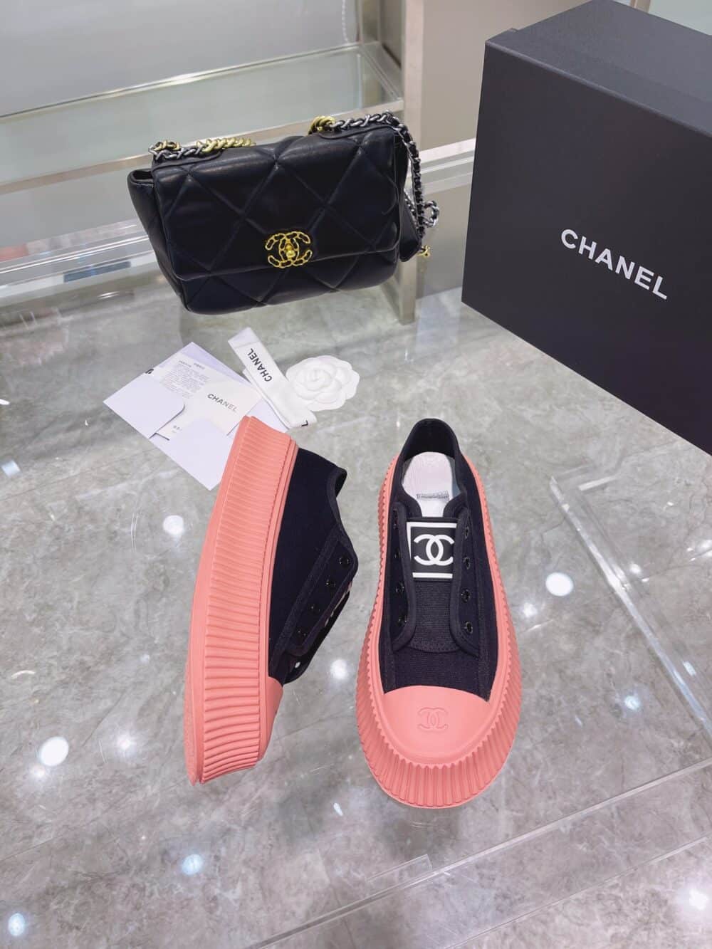 CHANEL CC CAP TOE SNEAKER BLACK AND PINK